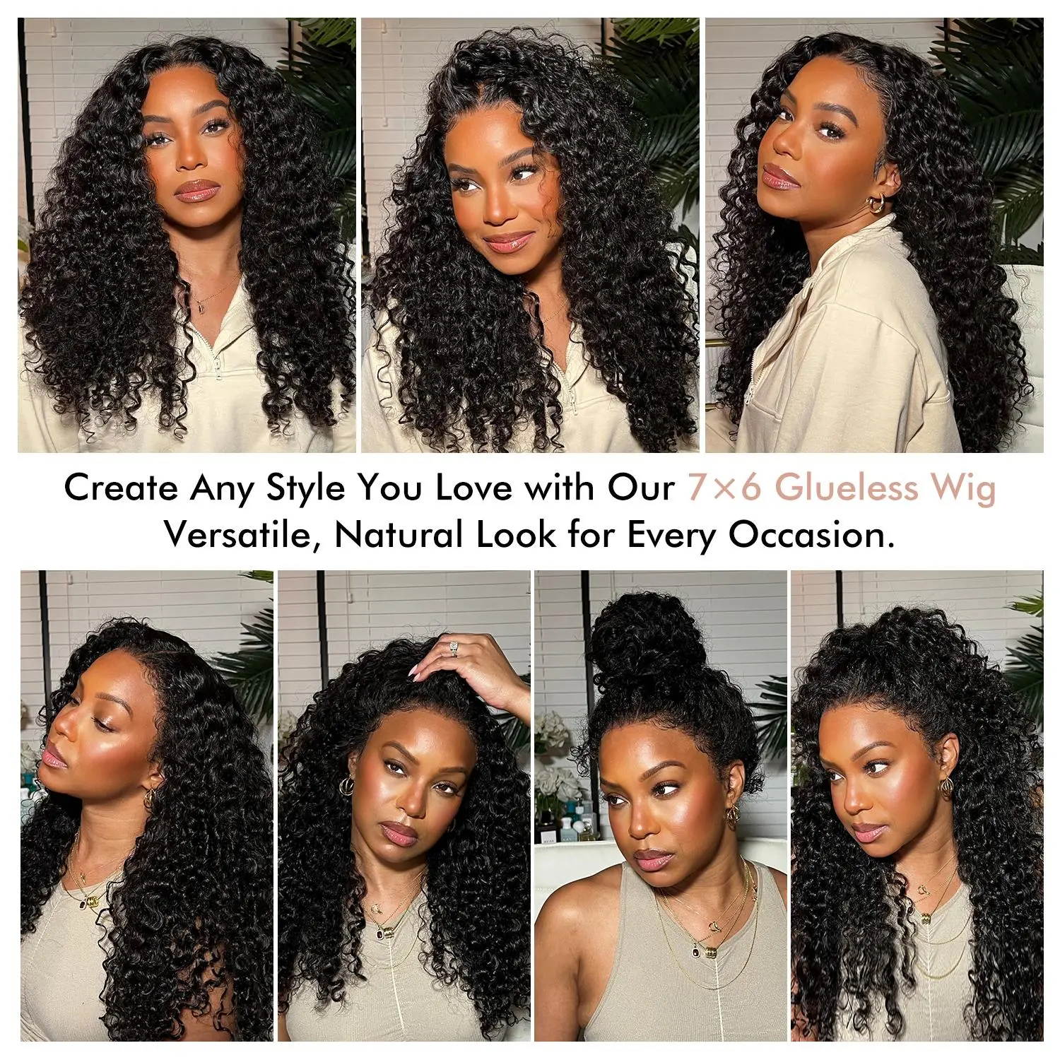 [Glueless] STERLY Burmese Curly Wig Natural Black Deep Wave 200% Density 99J Burgundy 7x6 Glueless Body Wave Wig with Drawstring Burmese Curly One-Step Glueless Wig 100% Human Hair Wig Natural Color Kinky Curly Ready to Wear Wig