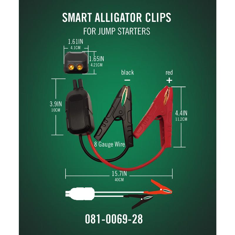 Spark-proof and reverse polarity protection ensures no charge is sent unless the alligator clips are connected correctly to the battery