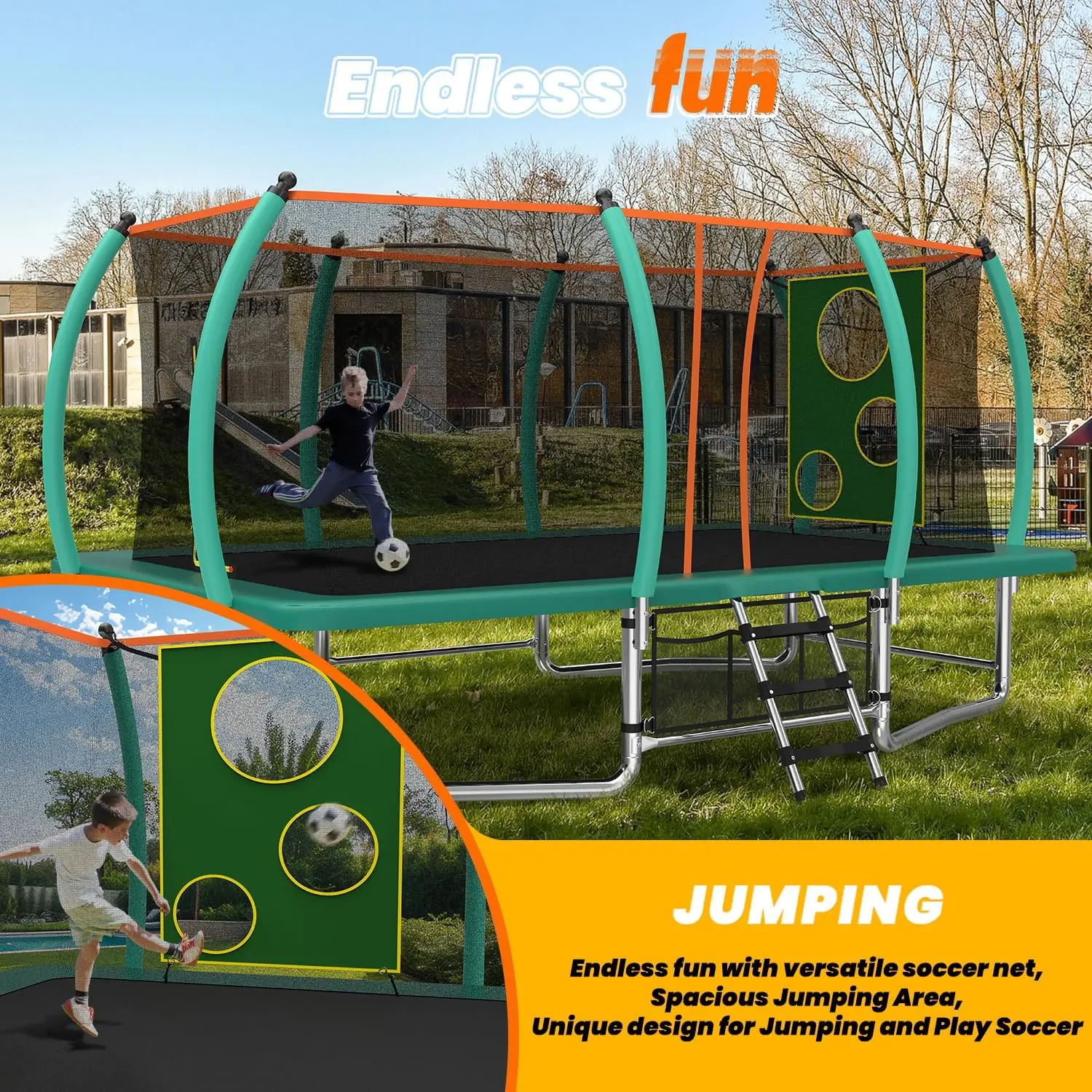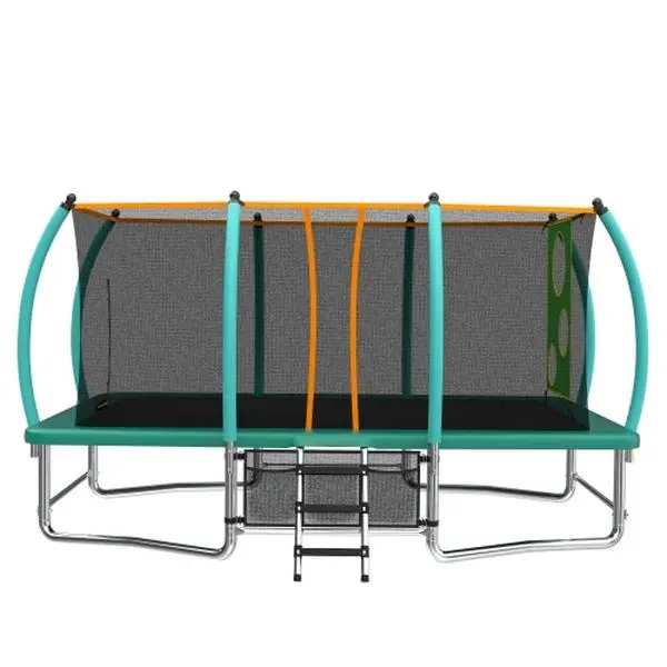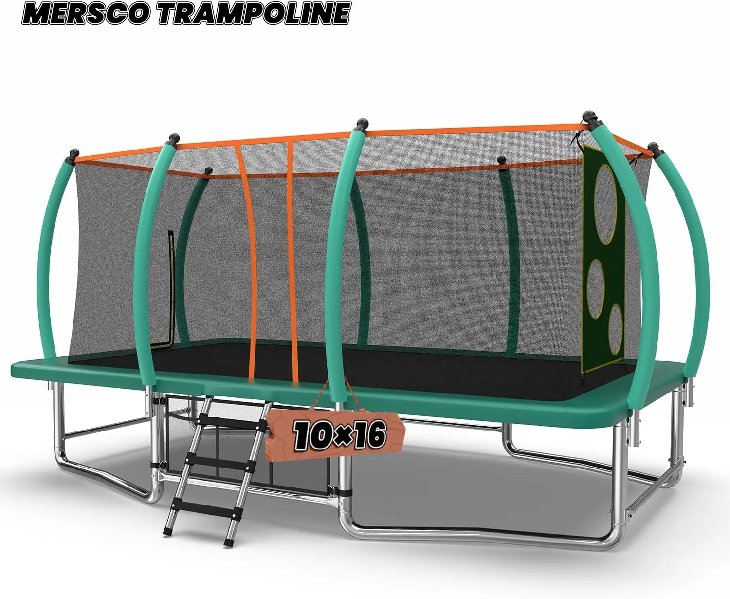 ·【Ultimate Elasticity, Enjoy the Fun】The rectangle trampoline with unique high density waist - drum galvanized spring design provides super elasticity. You can bounce effortlessly and enjoy the thrill of sky-bounding.Our upgraded 10*16FT trampoline is also specially designed with 4 balance bars to connect every legs, which provide a more even force to make trampoline more stable. This outstanding elasticity remains stable for 3 years,offering a consistent high - quality jumping experience.