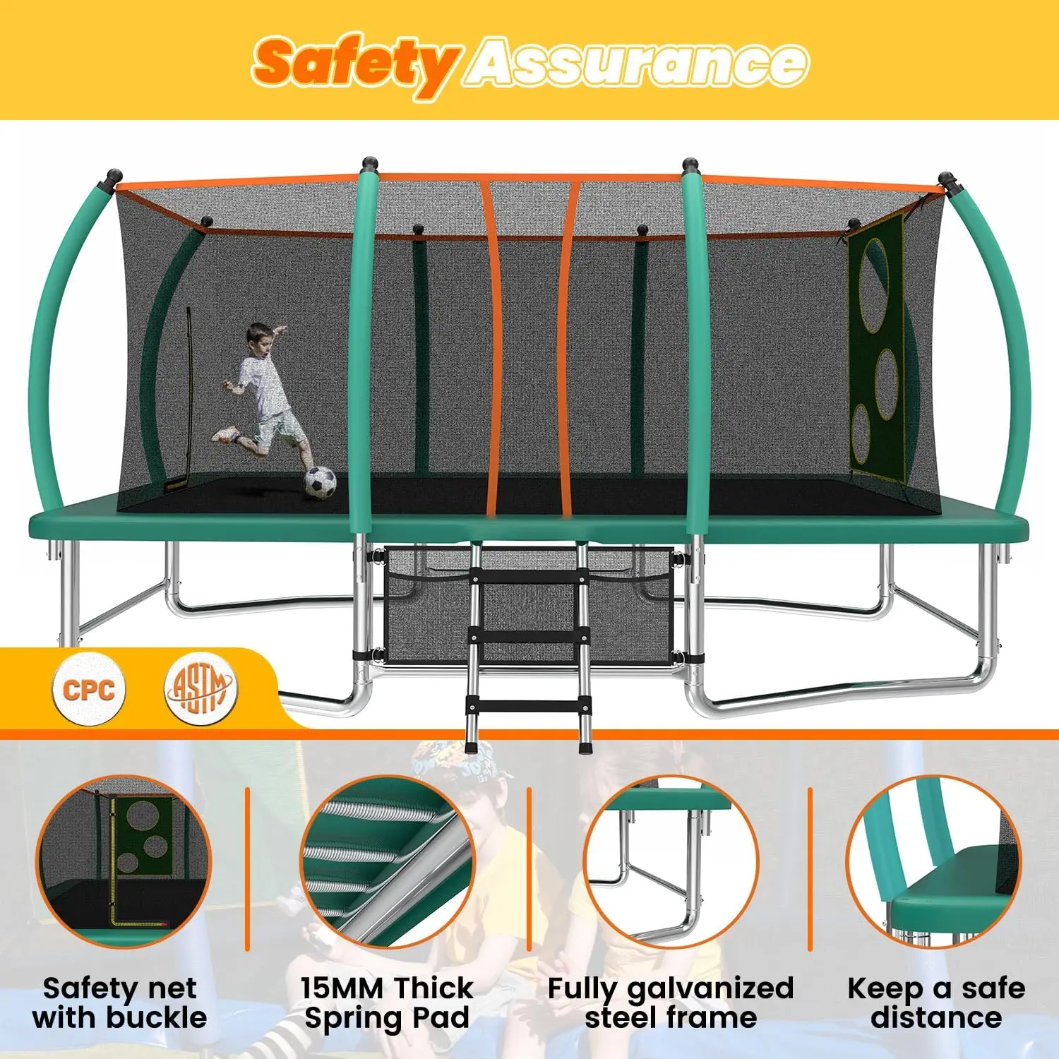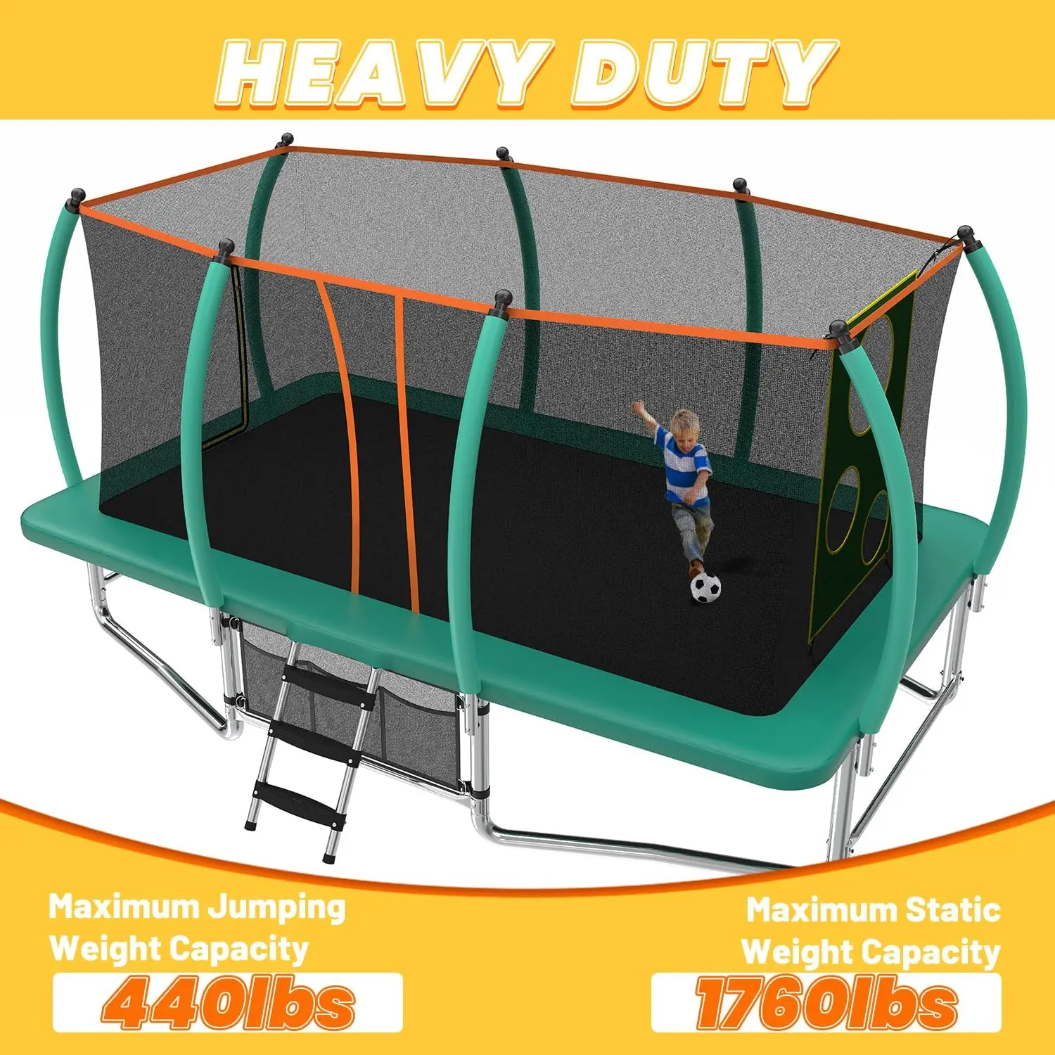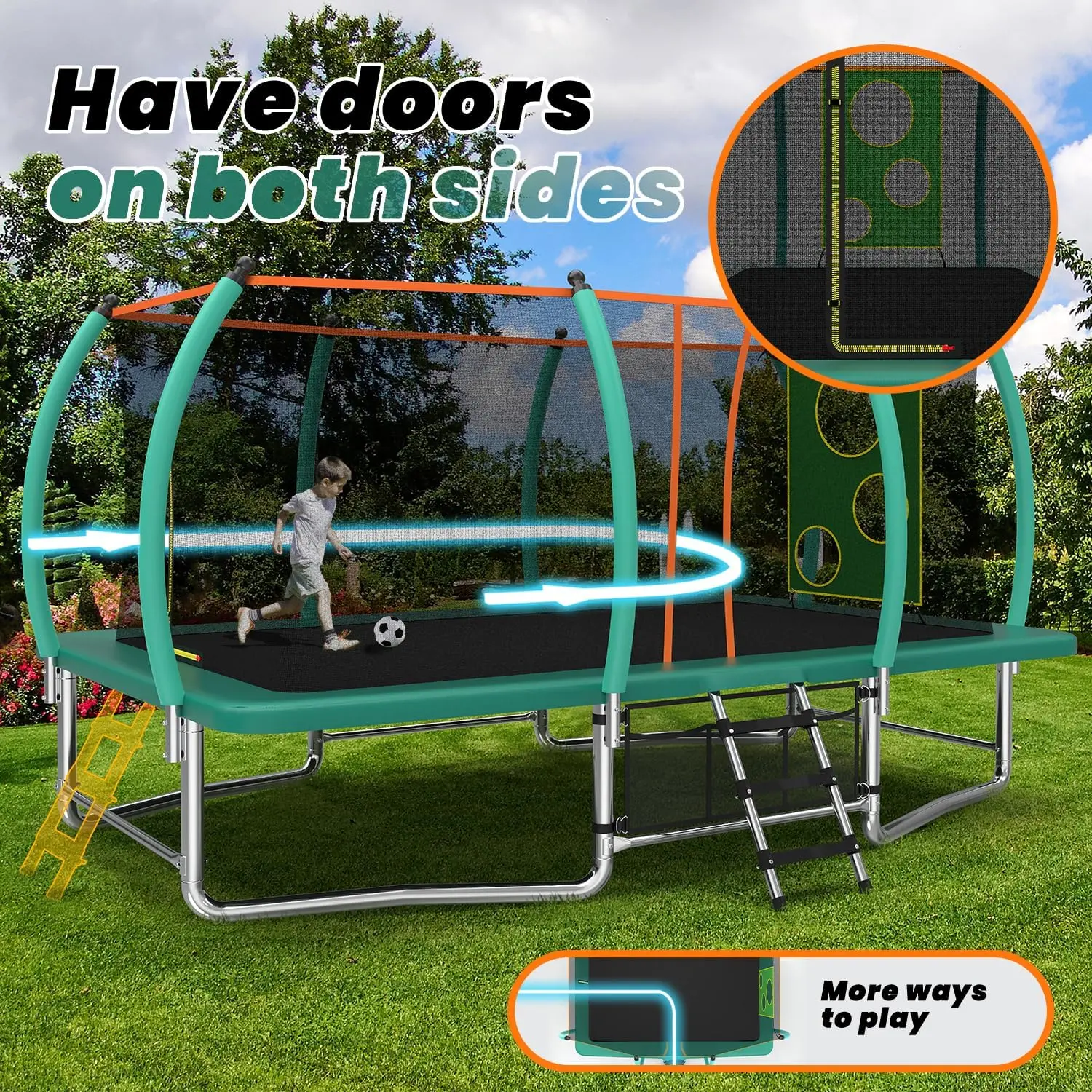 ·【Ultimate Elasticity, Enjoy the Fun】The rectangle trampoline with unique high density waist - drum galvanized spring design provides super elasticity. You can bounce effortlessly and enjoy the thrill of sky-bounding.Our upgraded 10*16FT trampoline is also specially designed with 4 balance bars to connect every legs, which provide a more even force to make trampoline more stable. This outstanding elasticity remains stable for 3 years,offering a consistent high - quality jumping experience.