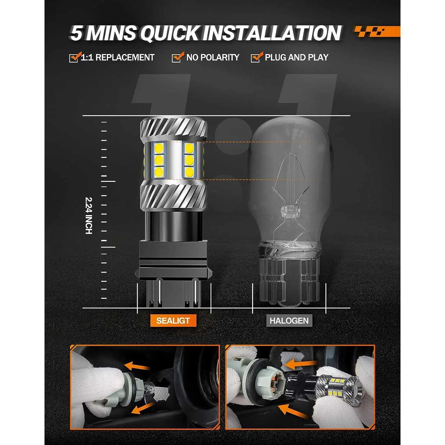 ·(Plug and play)non-polarity, almost same size as halogen bulbs, easy Installation, built-in intelligent IC driver, canbus error free for 95% vehicle
