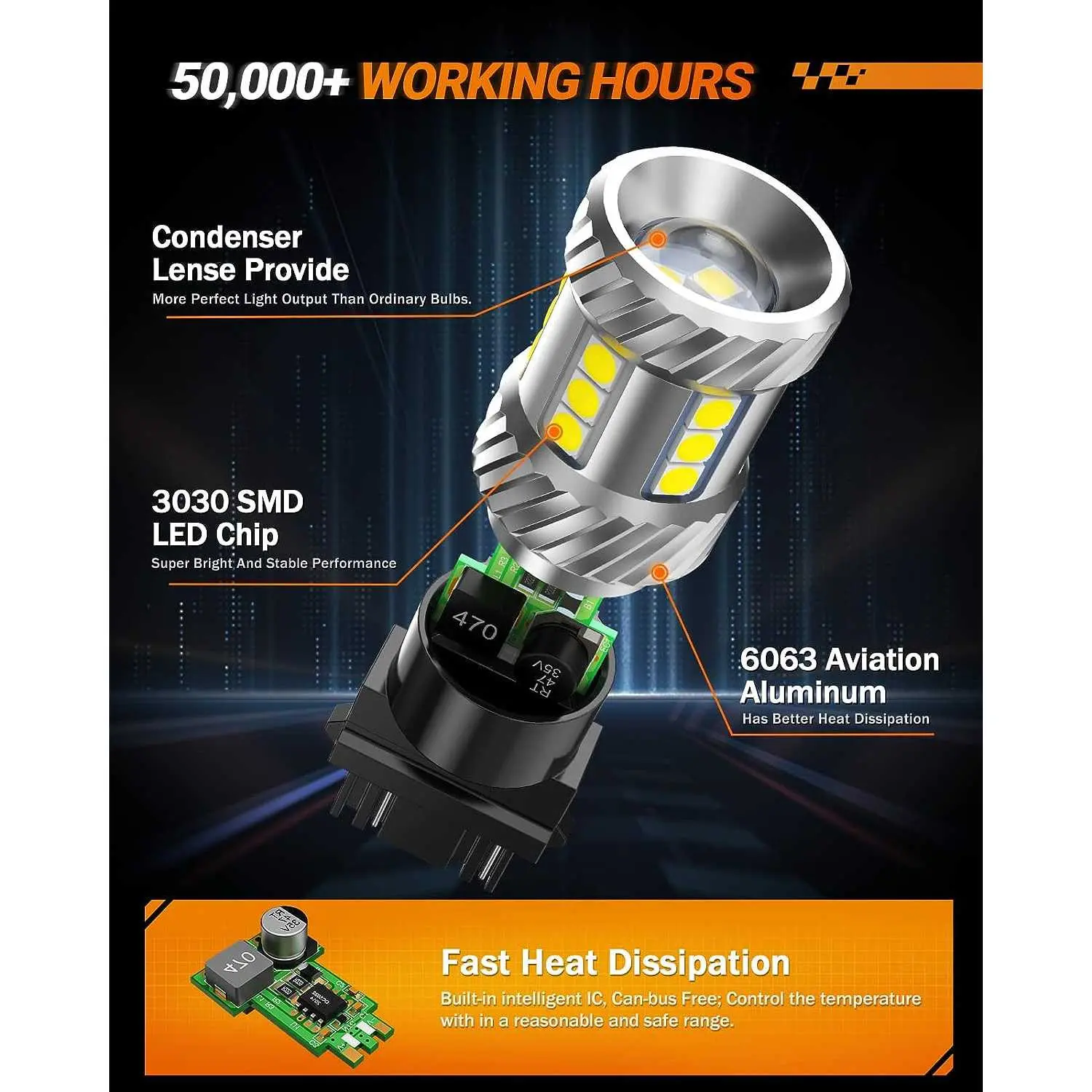 ·(Fitment)Fits for 3156 3056 3356 3456 4156 3047 3157 3157A 3057 3155 3157NA 4157 etc Application for tail lights, brake lights, reverse lights, backup lights, side marker lights, rear lights etc