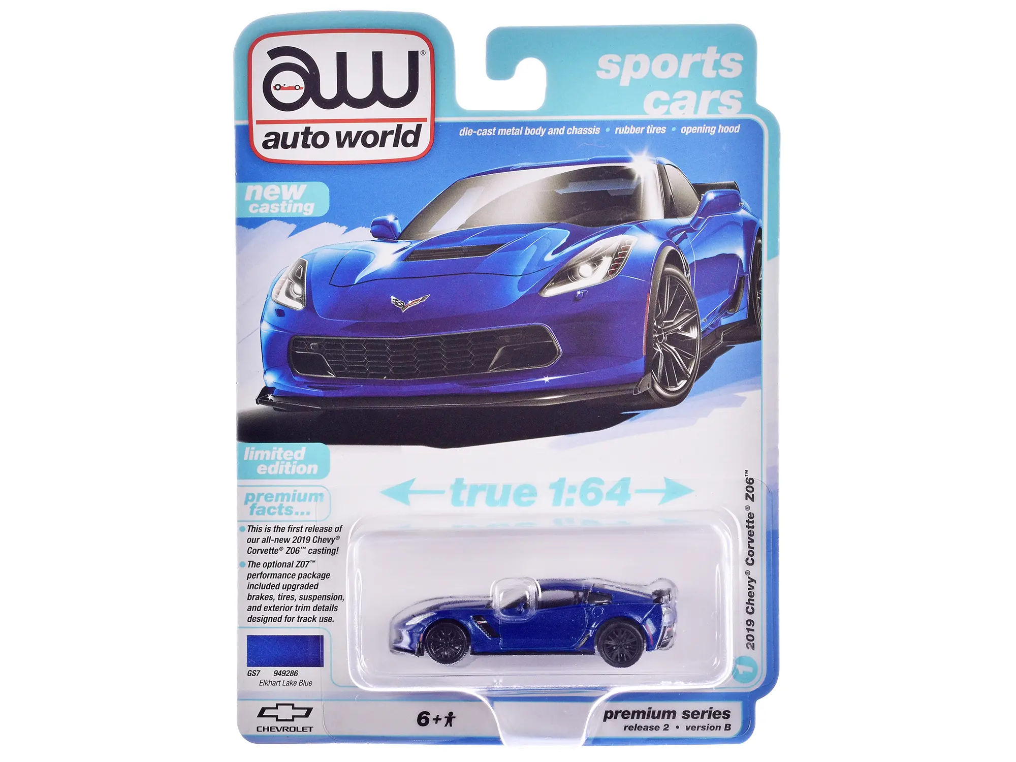 2019 Chevrolet Corvette Z06 Elkhart Lake Blue Metallic "Sports Cars" Series 1/64 Diecast Model Car by Auto World