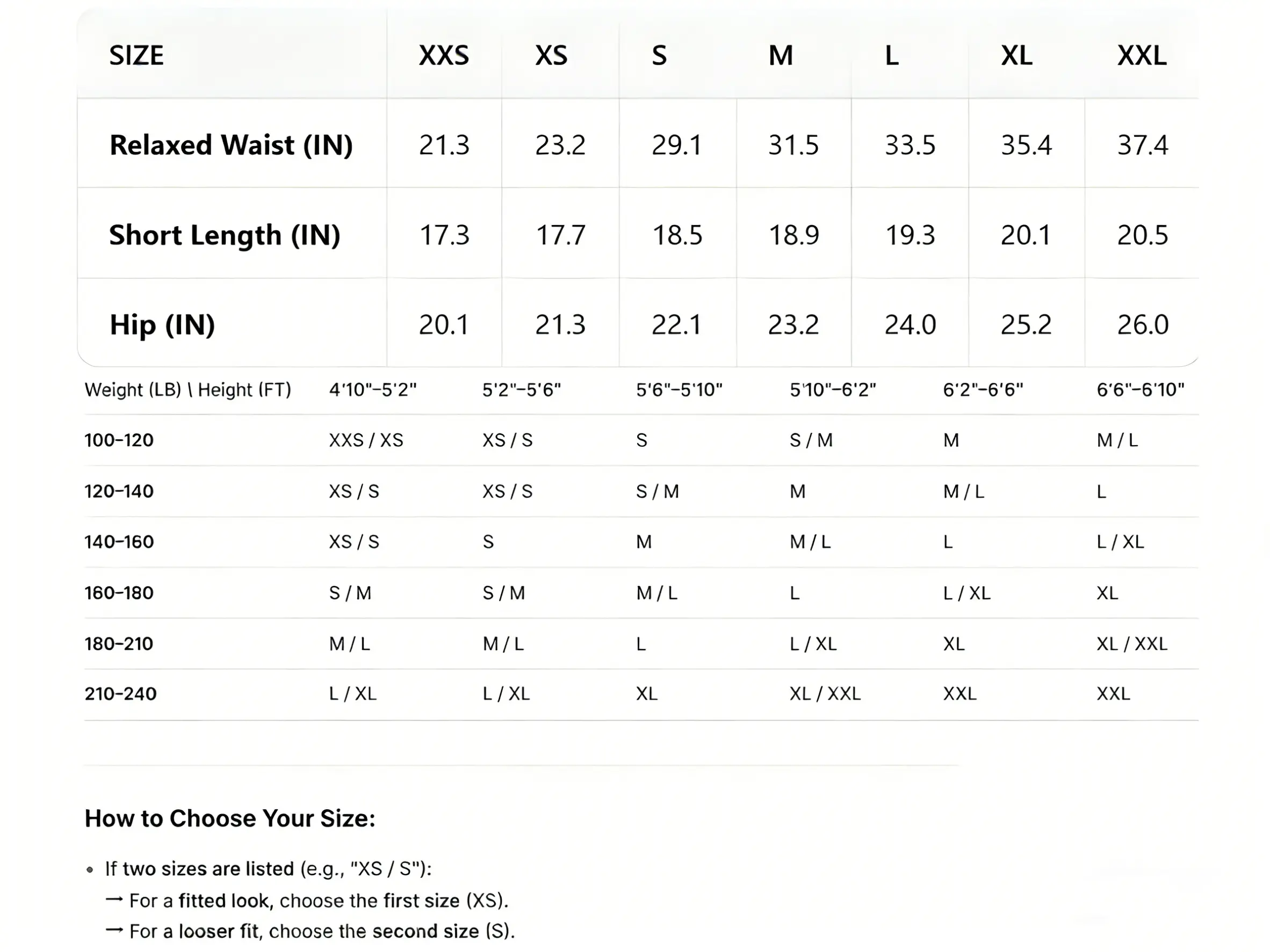 (Size Down or Two)
