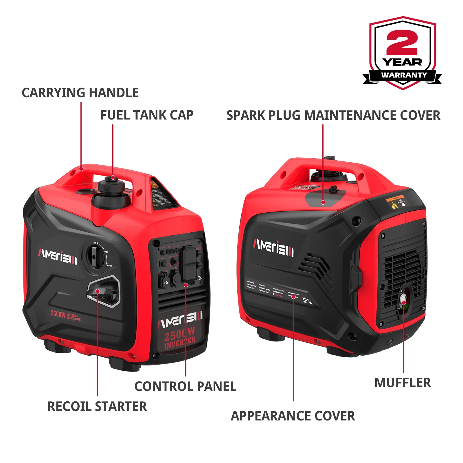 ·Features a CARB compliant, low-oil shutdown, overload protection and Eco-mode. 2-year warranty with FREE lifetime technical support from experts.