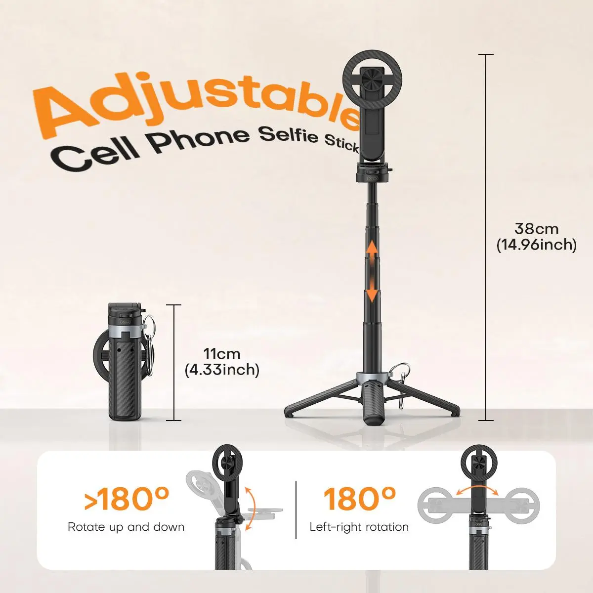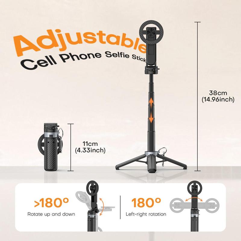 If you have an iPhone 12 or newer this magnetic 4in1 selfie stick is great. Everything works as advertised the magnet is very strong and if you add the additional metal ring to can make it 3 times stronger or just used the metal ring for other phones that don’t have MagSafe. The camera control is awesome it has 3 different Regular shutter button to take pics or selfies, you can take off the button and place it near your hand for easy access or you can just take it with you and it works with Bluetooth and you can use it as a remote control to take a picture or video from far away. “Excellent”