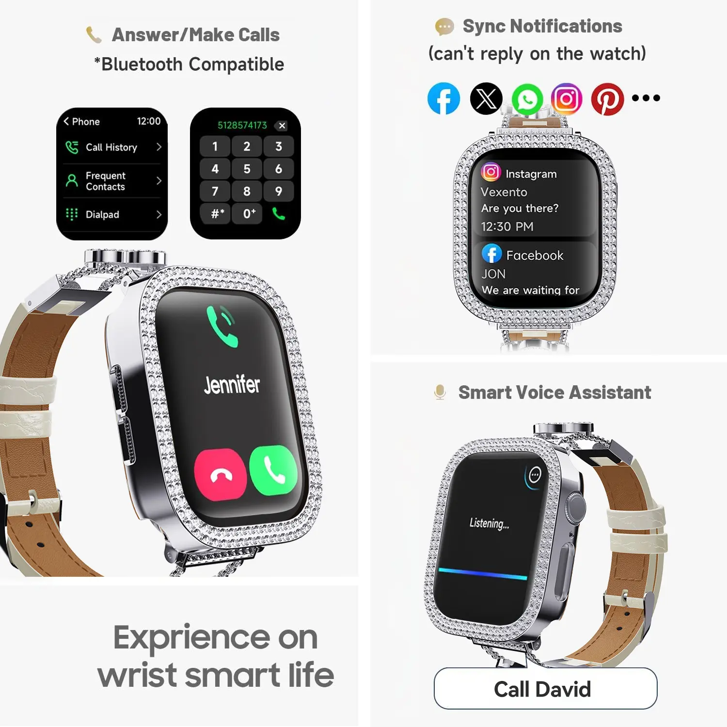 Inside the box, you’ll find the smart watch with a luxe silver or royal gold finish, ready to pair with your iPhone or Android device. Whether it’s a gift for your wife, girlfriend, or a treat for yourself, this wearable device is perfect for elevating everyday style and wellness.