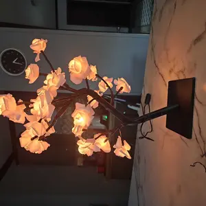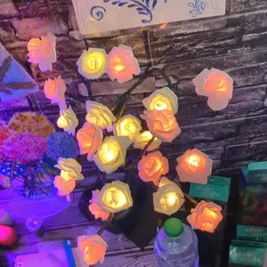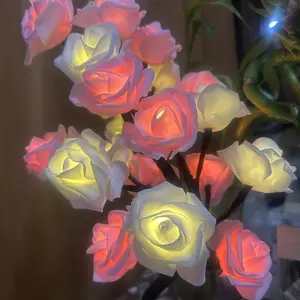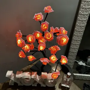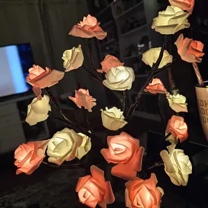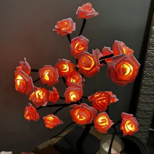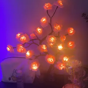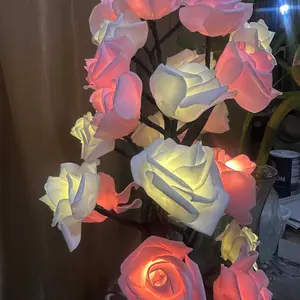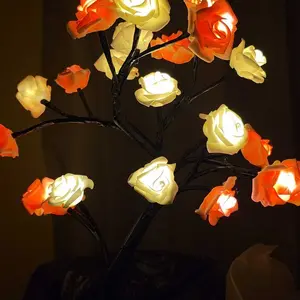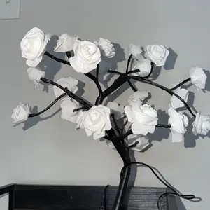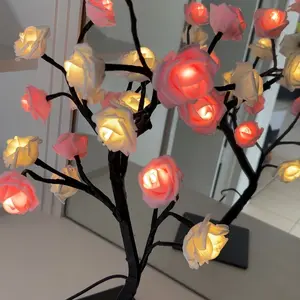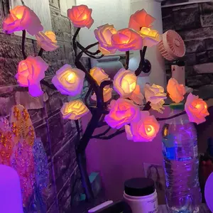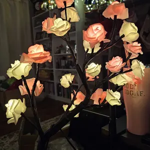 2025 Valentine's Day pink rose artificial tree light, LED luminous desktop decoration, romantic bedroom night light, wedding decoration, proposal gift