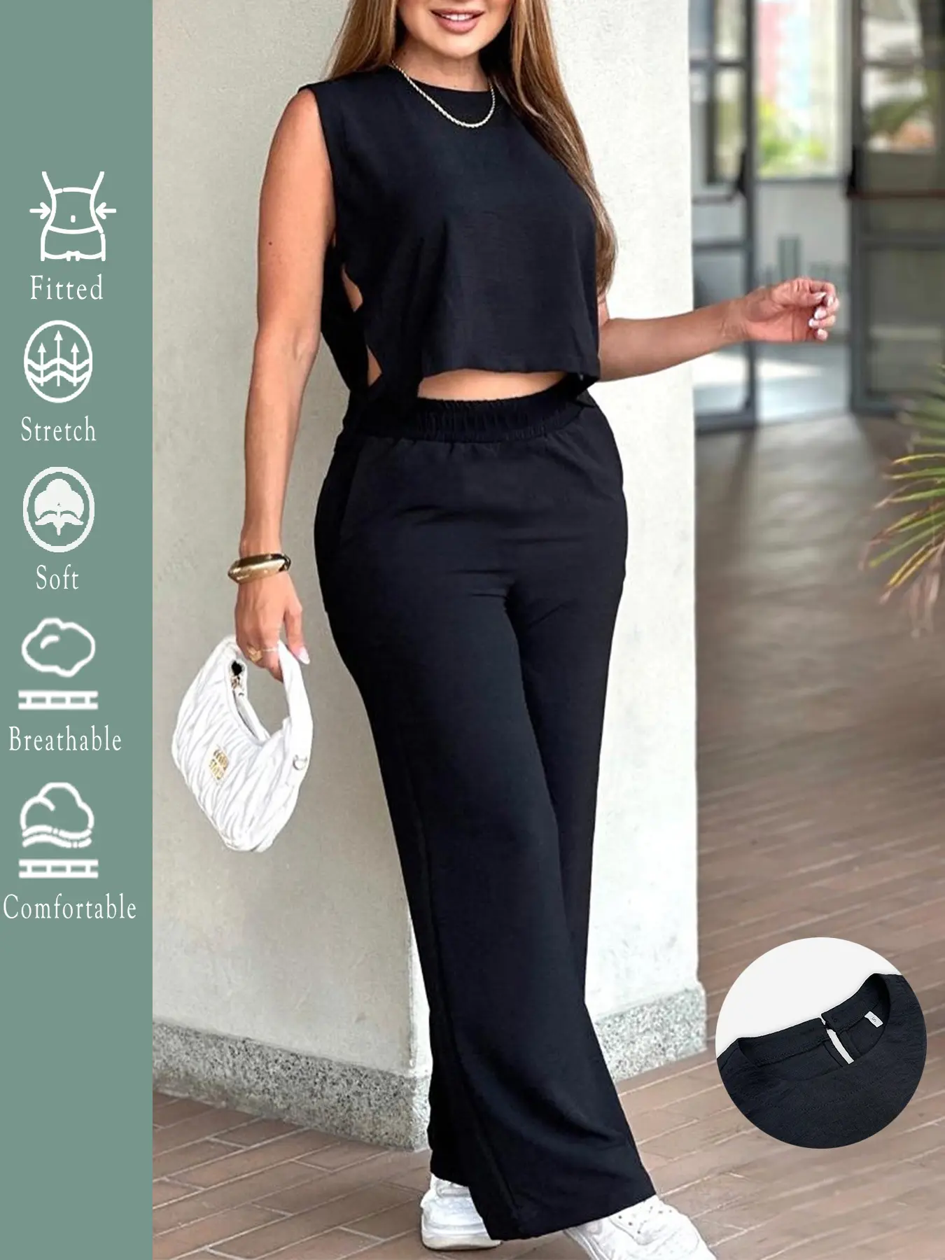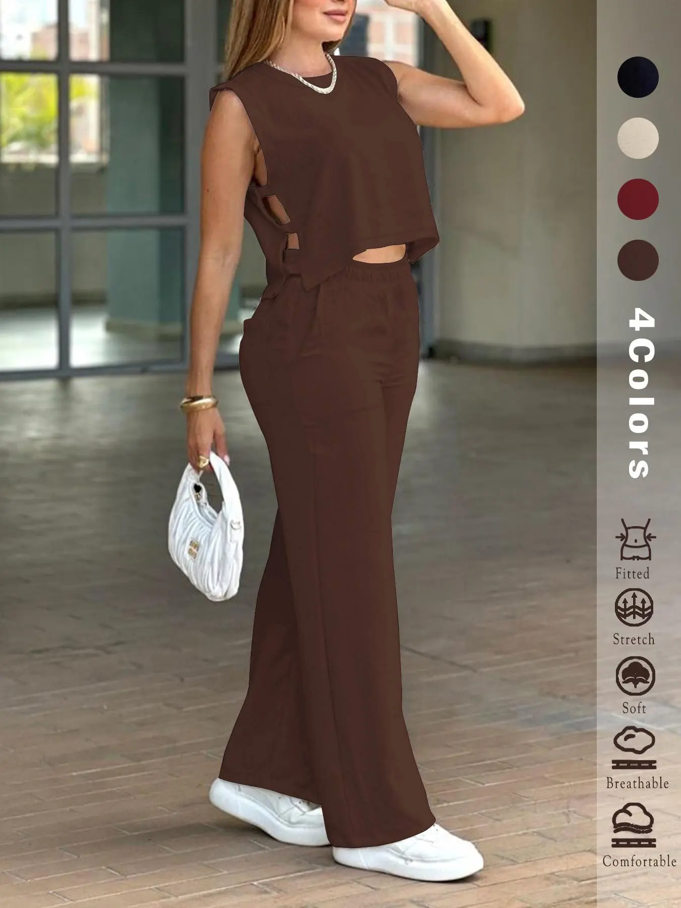 5. 2025 Women's 2PCS Set - Sleeveless Side Cutout Crop Top & Wide-Leg Pants | Loose Fit, Elastic Waist w/Pockets | OOTD for Spring/Summer/Autumn | Office, Commute & Daily | All Body Types | #Fashion2025 #WorkWardrobe #LoungeElegance
