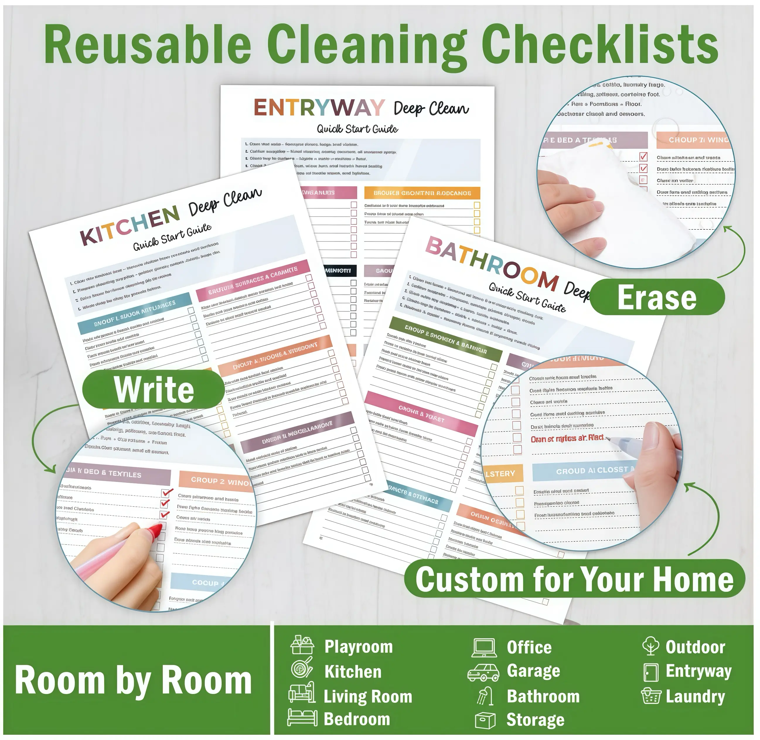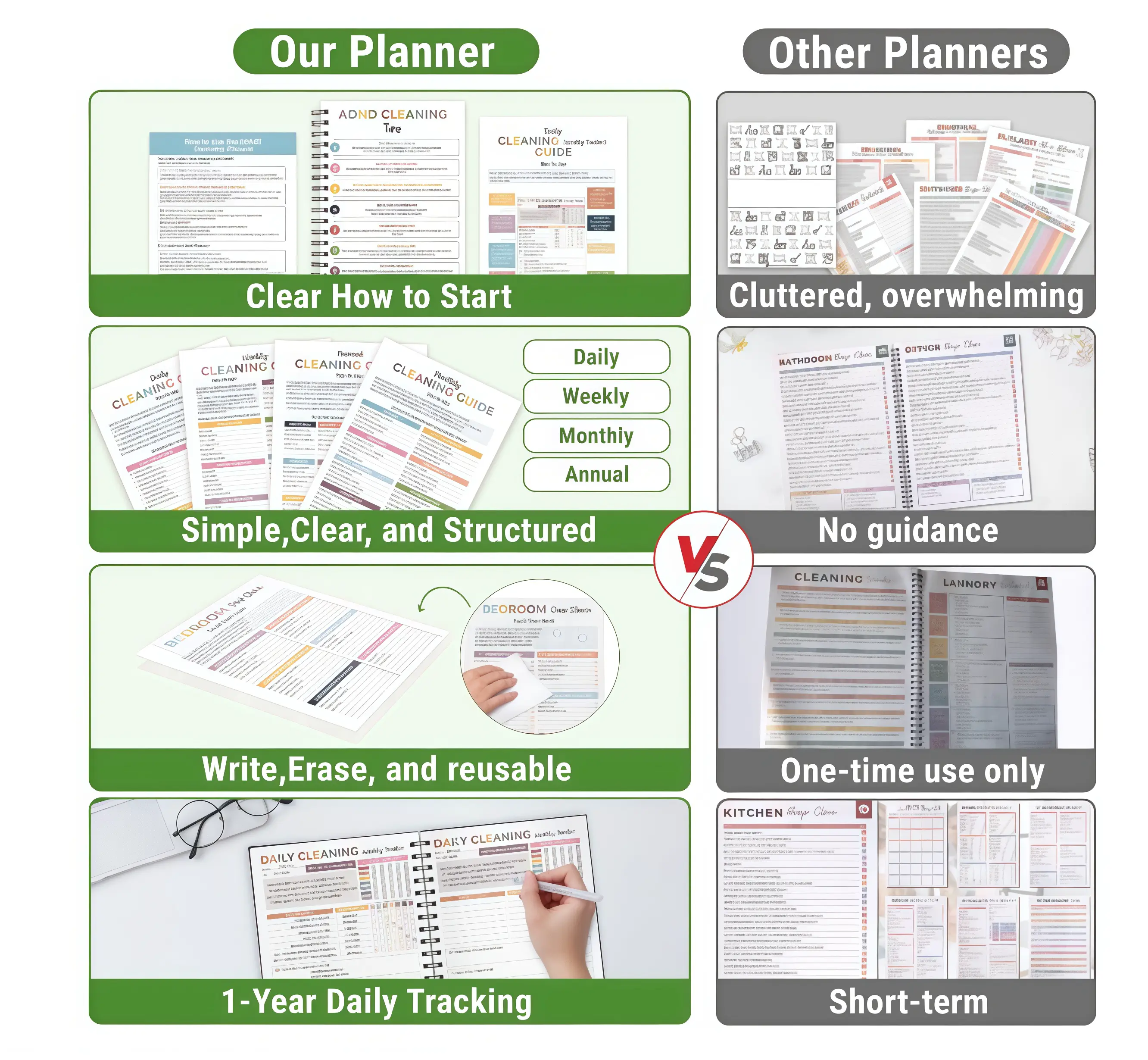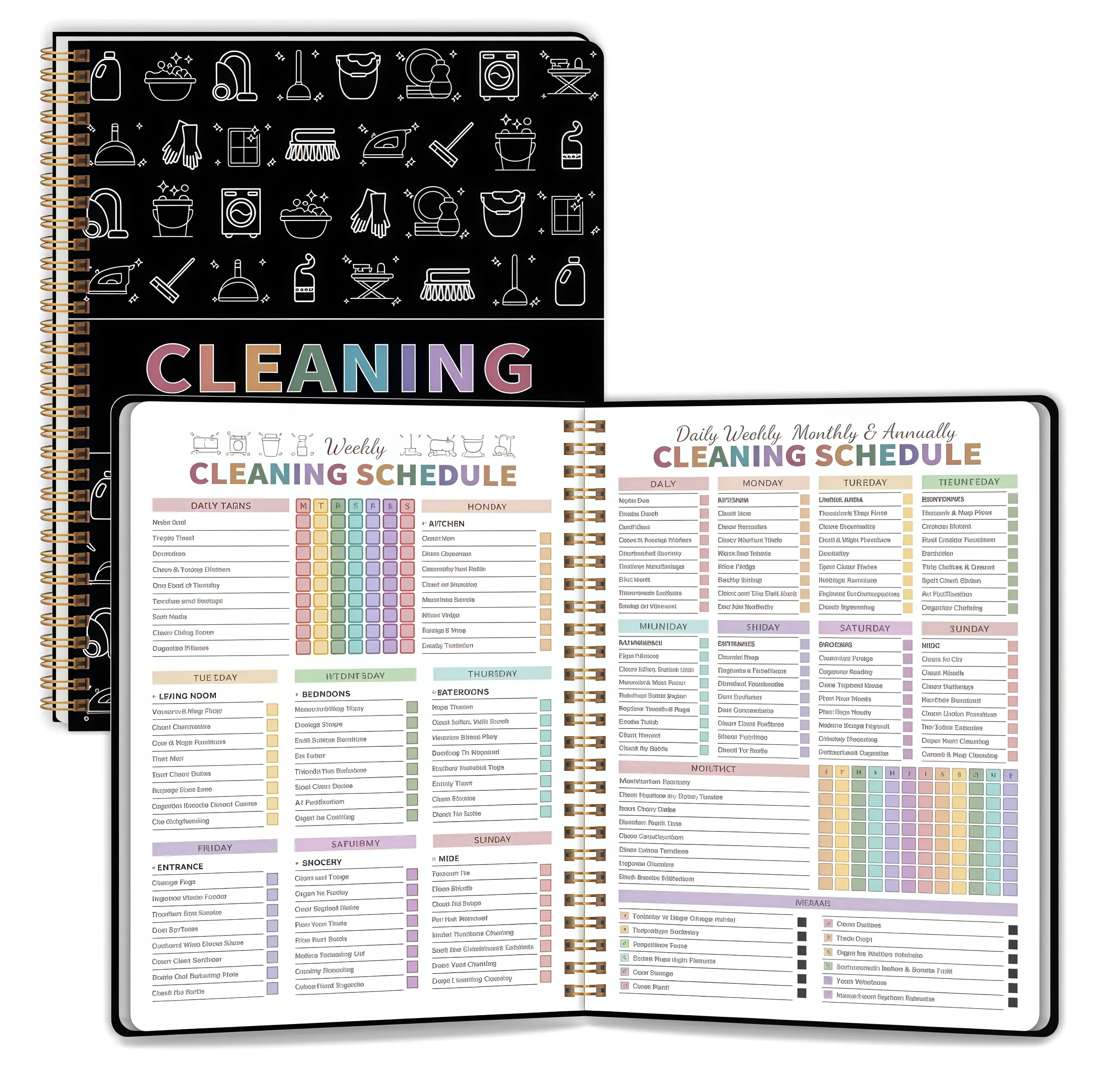 ·Daily, Weekly & Monthly ChecklistsSimple schedules that break cleaning into small, manageable steps.