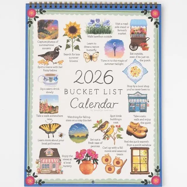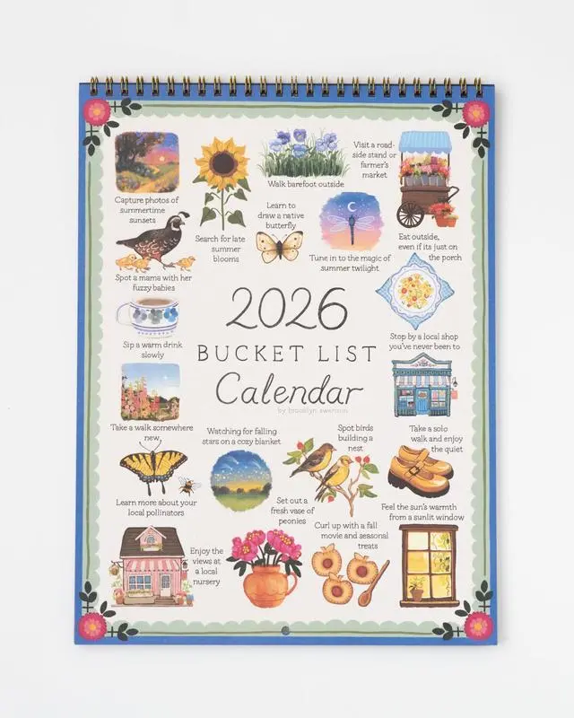 This planner is ideal for artists looking to organize their projects and budget. The uncoated matte cardstock and spiral binding make it a practical choice for creative planning. Stay organized and focused with this 2026 Bucket List Calendar.