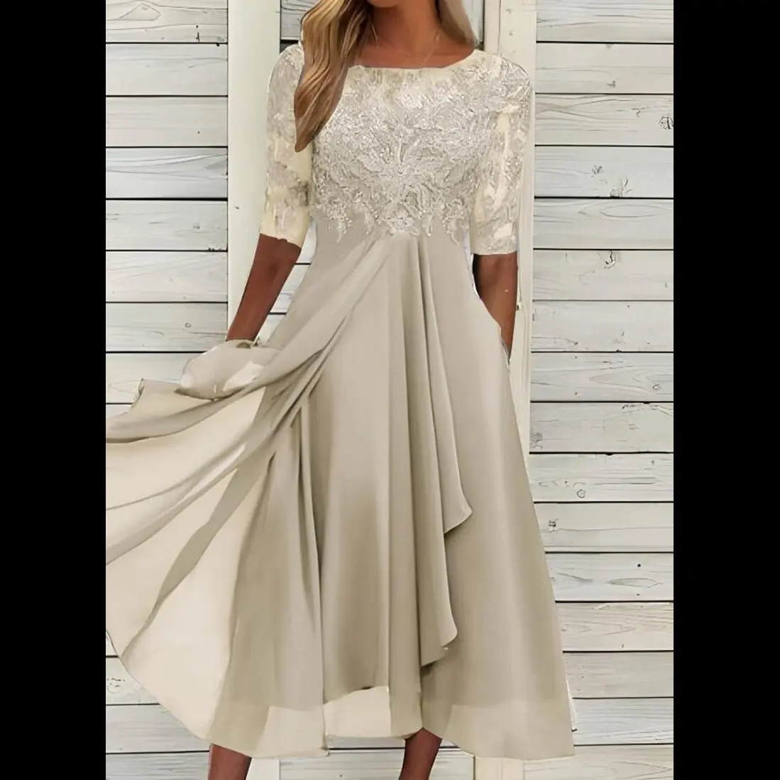 5. 2026 Chiffon with Lace and Hollow Out Design, Long for Bridesmaids, Evening Gown, Women's Mother Bride dress D471 D471 Elegant Fashion