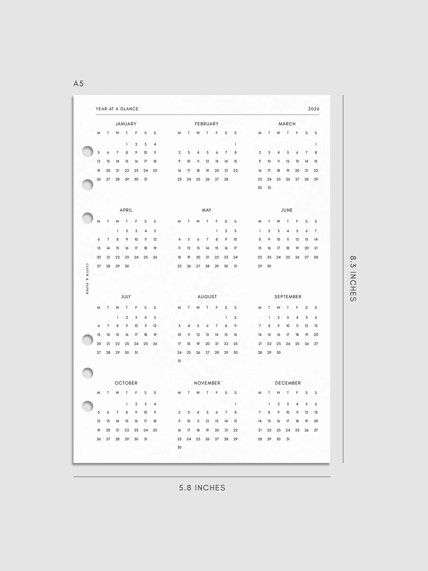 Given the abundance of pages in our dated inserts, not all systems will accommodate the entire year's worth of inserts at one time. We recommend keeping three to six months' worth of inserts in your planner at a time, depending on your planner cover.