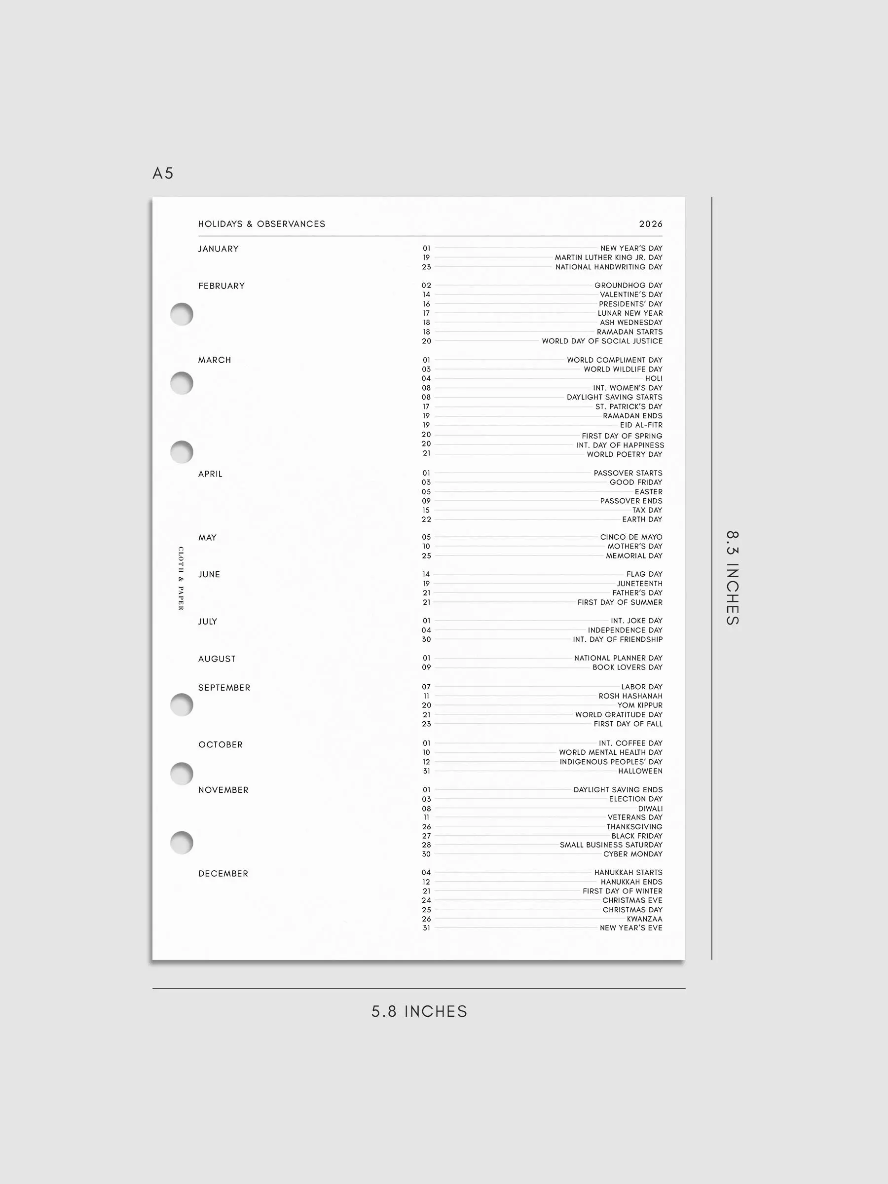 ·Holidays + Observances