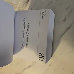 The calendar fell apart on transit so I have like five different pieces just kind of together on my desk. I’m going to use it regardless, but I wish the adhesive was stronger to hold the calendar together.