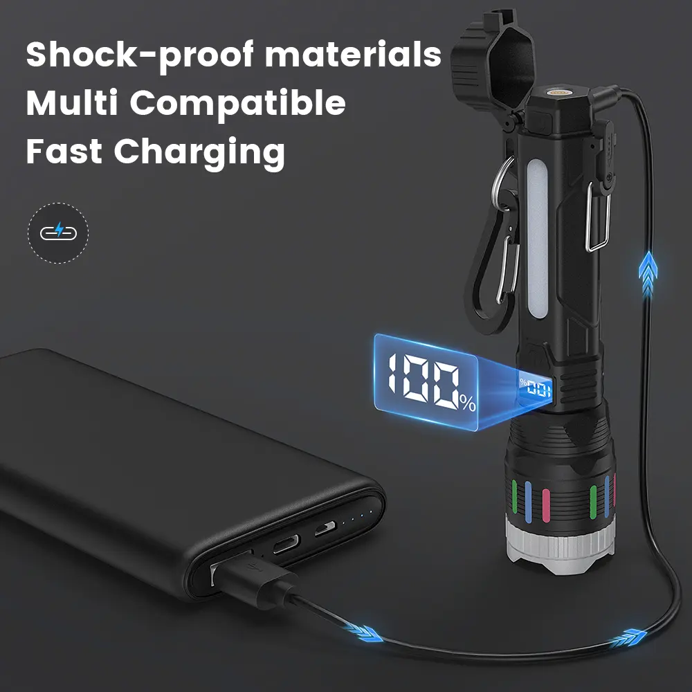【2026 New Model】 2400 Lumen Flashlight with Ignition Function, 4 Lighting Modes, Digital Display, Rechargeable, Zoomable, Waterproof, Adjustable Brightness, Suitable for Outdoor Camping and EmergenciesTiktokShopSpringGlowUp