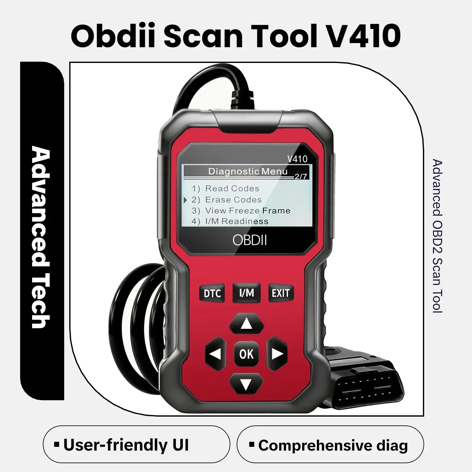【User-Friendly Interface】: Features an intuitive diagnostic menu for easy navigation through read codes, erase codes, etc.