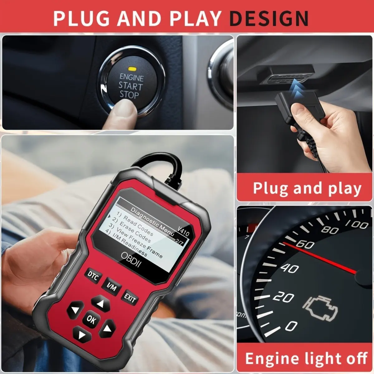 【Comprehensive Diagnostics】: Reads and clears all errors from cars equipped with OBDII/EOBD protocols after 1996.