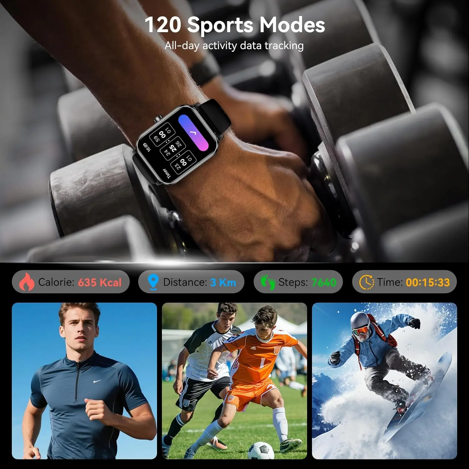 2026 New Multi-functional Smartwatch,Touch Screen Watch,Smart wearables,Advanced Outdoor Fitness Smartwatch,Bluetooth Call HD Screen,Dynamic Dials Messages Push 100+ Sports Modes, High Battery Life,Daily Heart Rate & Sleep Monitor,NewYear Gift,Black