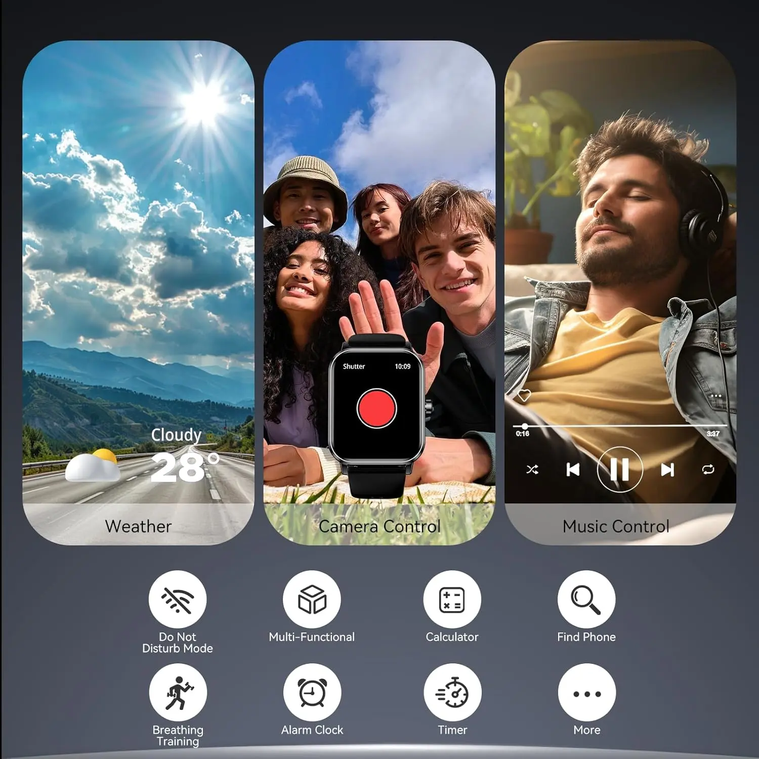 1.83"HD Touch and DIY Dials: Smartwatch let you have different touch screen watch experience, watch smart light up the screen for your use, equipped with 100+screens for you to choose, you can also DIY unique fitness tracker screen.