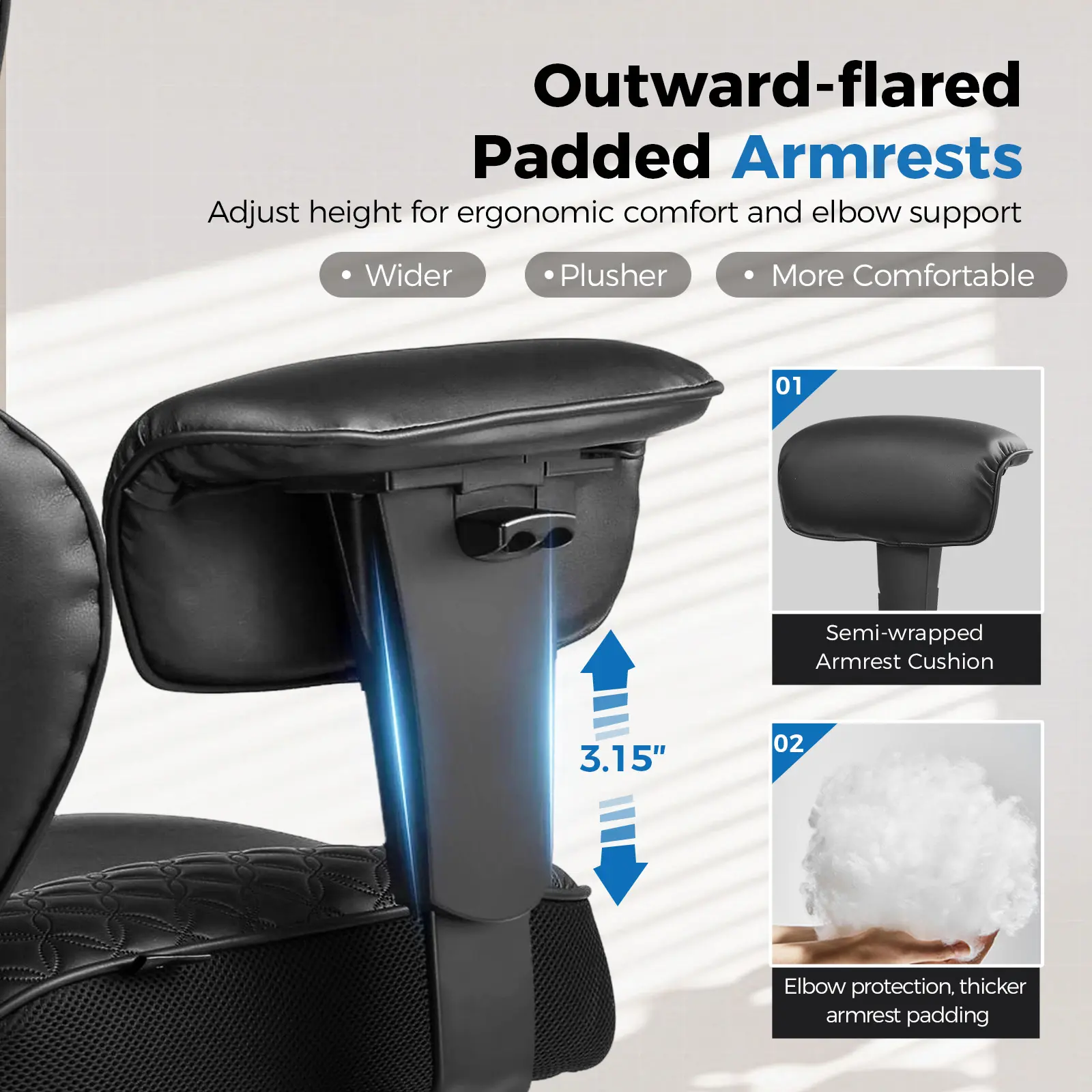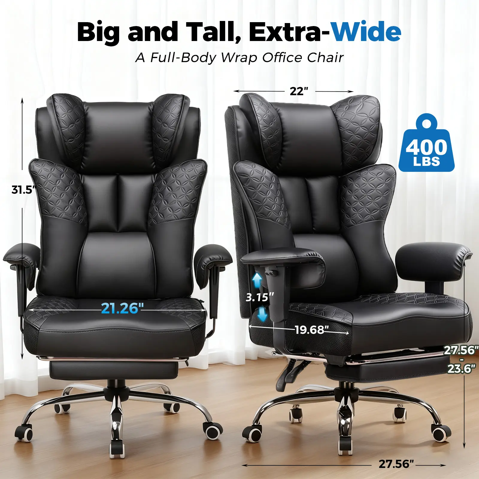 ·[Sofa-Like Seating] This executive chair features pocket spring lumbar support, maintaining elasticity and breathability for long hours of sitting. The widened seat has no restrictive side wings, while the wraparound wing-back design provides a cozy, hugged feeling. With an adjustable footrest, you can sit comfortably in any position—just like relaxing on your own sofa.