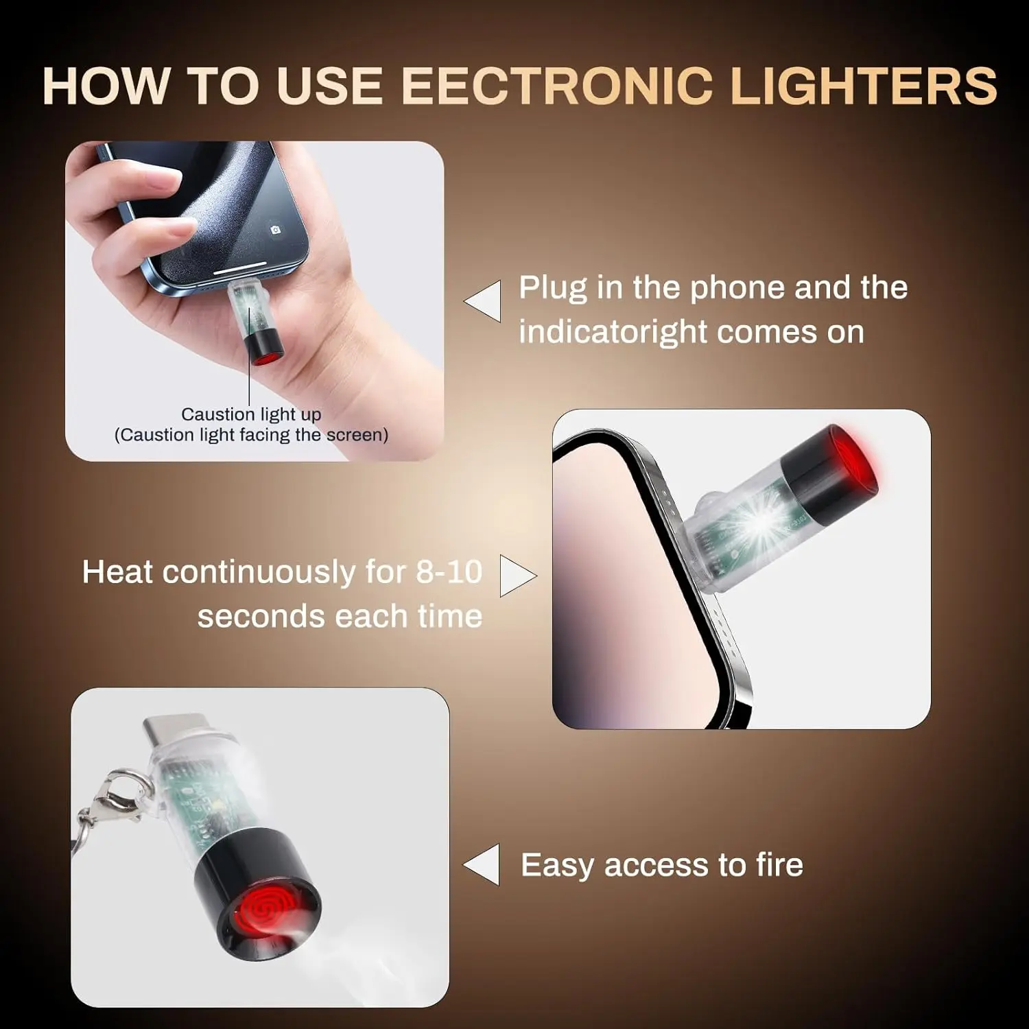 USB-C POWERED: Innovative flameless lighter that operates directly through USB Type-C connection to your mobile phone's charging port .Partially rechargeable mobile power equipment can also be used.