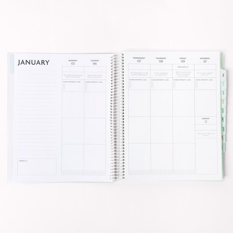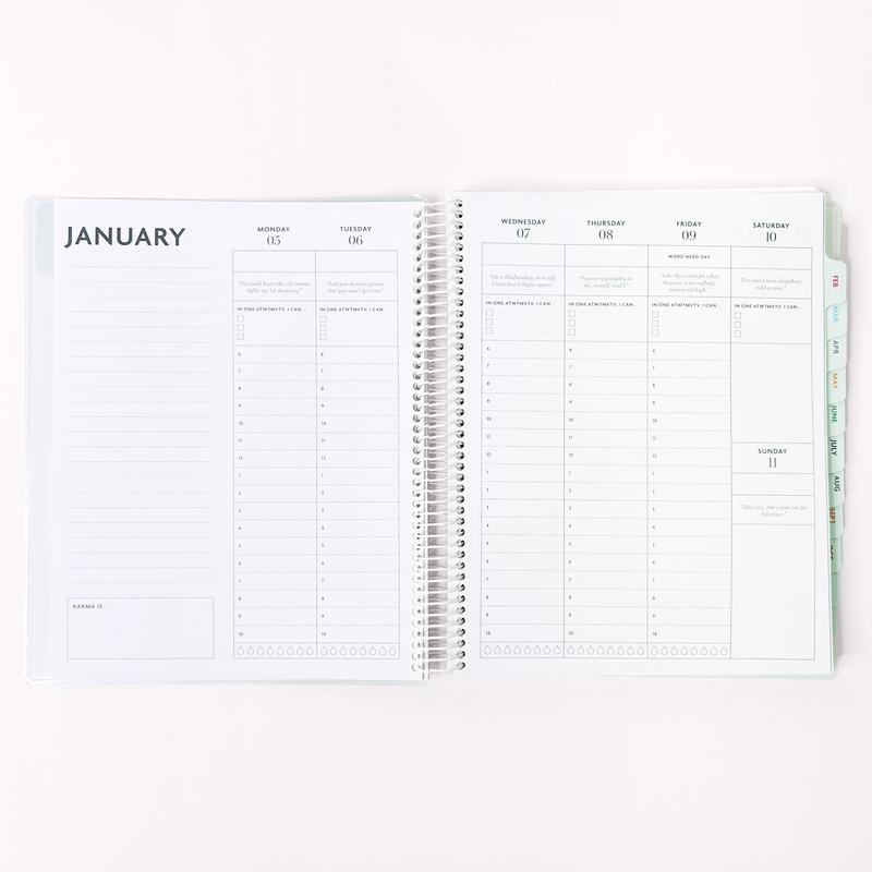 Our planner will help you set up your dominoes at the beginning of the year and knock them out each month. Start each day with the perfect Taylor lyric and knock out your tasks one ATWTMVTV at a time.