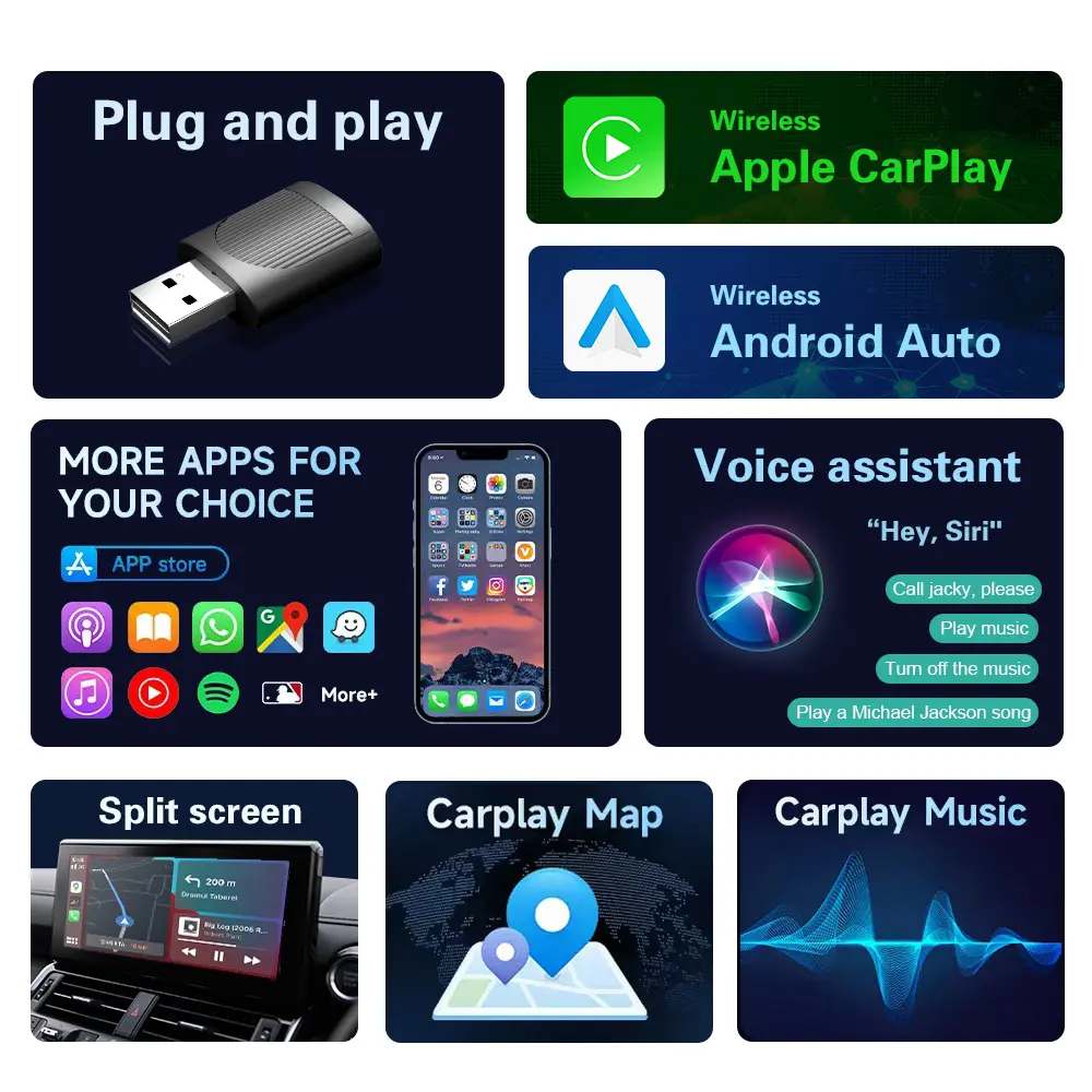 2026 Wireless Carplay Adapter for iPhone/Android - Fast Connection,No Latency,Hands-Free Call wireless adapter Electronic Charger CarPlay Adapter