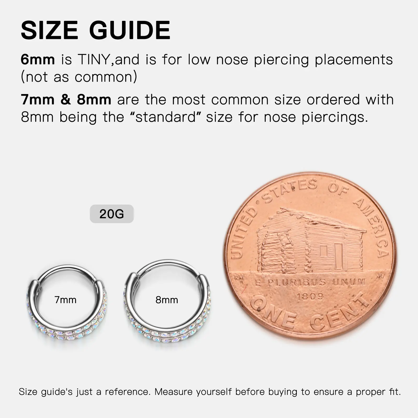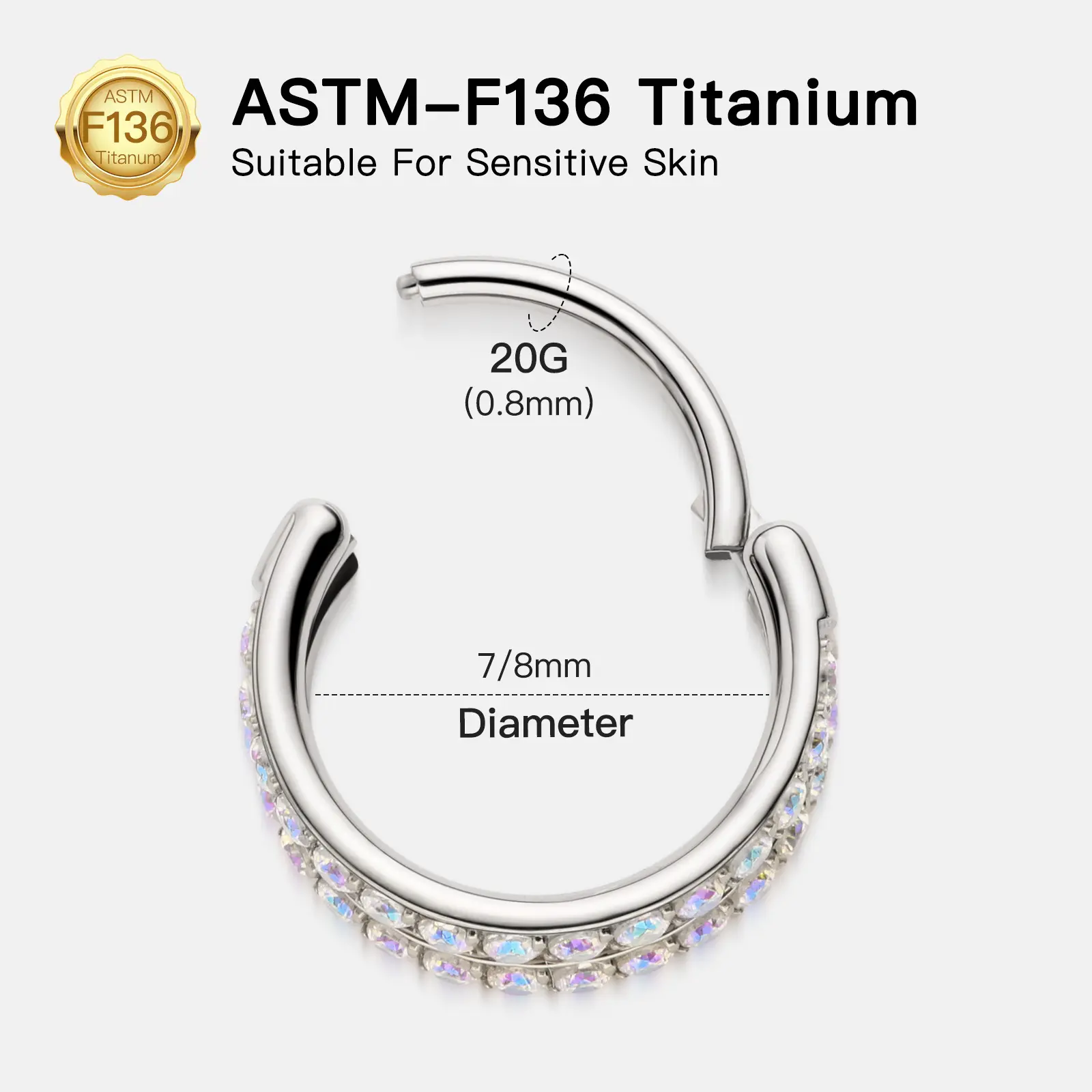 AAAAA+ Cubic Zirconia with a multi-angle cutting surface allows the CZ to reflect light in all directions, shining charmingly all the time. It features a non-removable hinged segment that makes it super easy to insert and remove. Suitable for nose hoops, septum hoops, septum rings, nose rings, ear piercings earrings, helix earrings, cartilage earrings, conch earrings, conch piercing jewelry, rook earrings, lobe earrings, daith earrings, lobe piercing hoops, helix piercing jewelry, and tragus earrings.