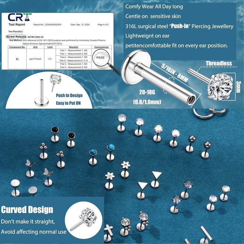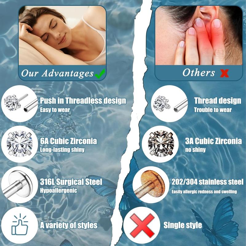 ·【Threadless Nose Studs】: The push-in Threadless nose studs have been modified and tested to be very strong, so you don't have to worry about dropping, faster wearing experience, easy to put on and take off.