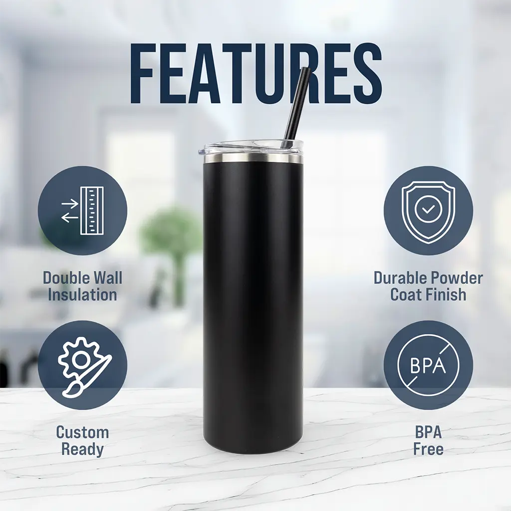 Our 20oz Powder Coated Skinny Tumbler is back and better than ever in a lineup of timeless, staple colors. This straight-sided, no-taper design offers an ideal surface area for laser engraving, making it a must-have for customization pros and crafters alike. Whether you're stocking up for events, small business orders, or personal projects, this tumbler is your blank canvas.