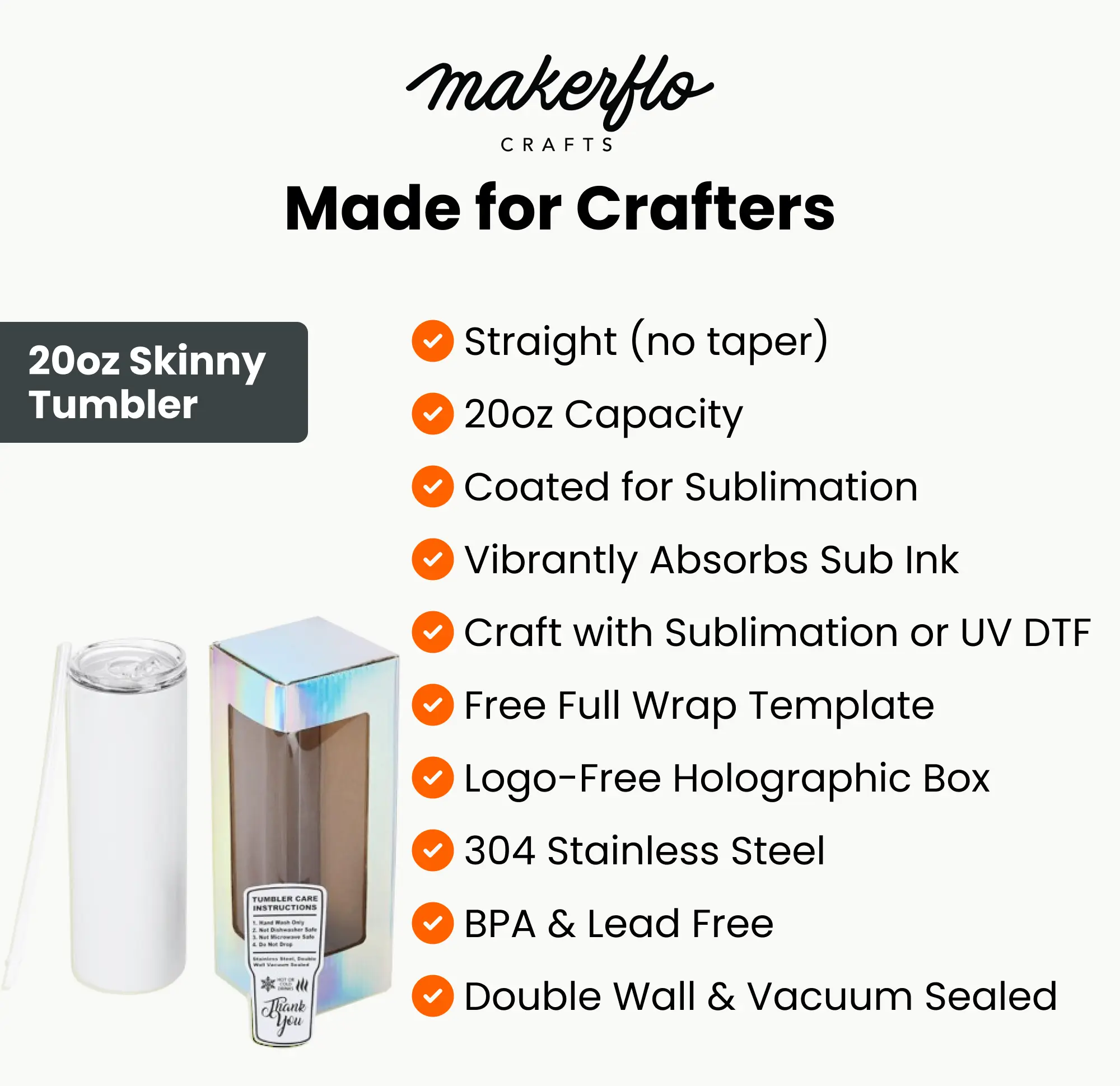 Absolutely LOVE the MakerFlo 20oz skinny sublimation tumblers!!! They are the perfect size for the cups I’ve been doing! Will definitely recommend and purchase again!!