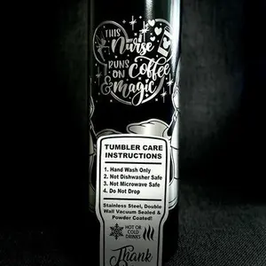 These tumblers engrave so nice just on Xtool software. Does well on Lightburn as well. D1 10 watt with chuck tool. Settings 100 power and 80 speed. Leaves hardly any cleanup. Made this for a friend as a gift.