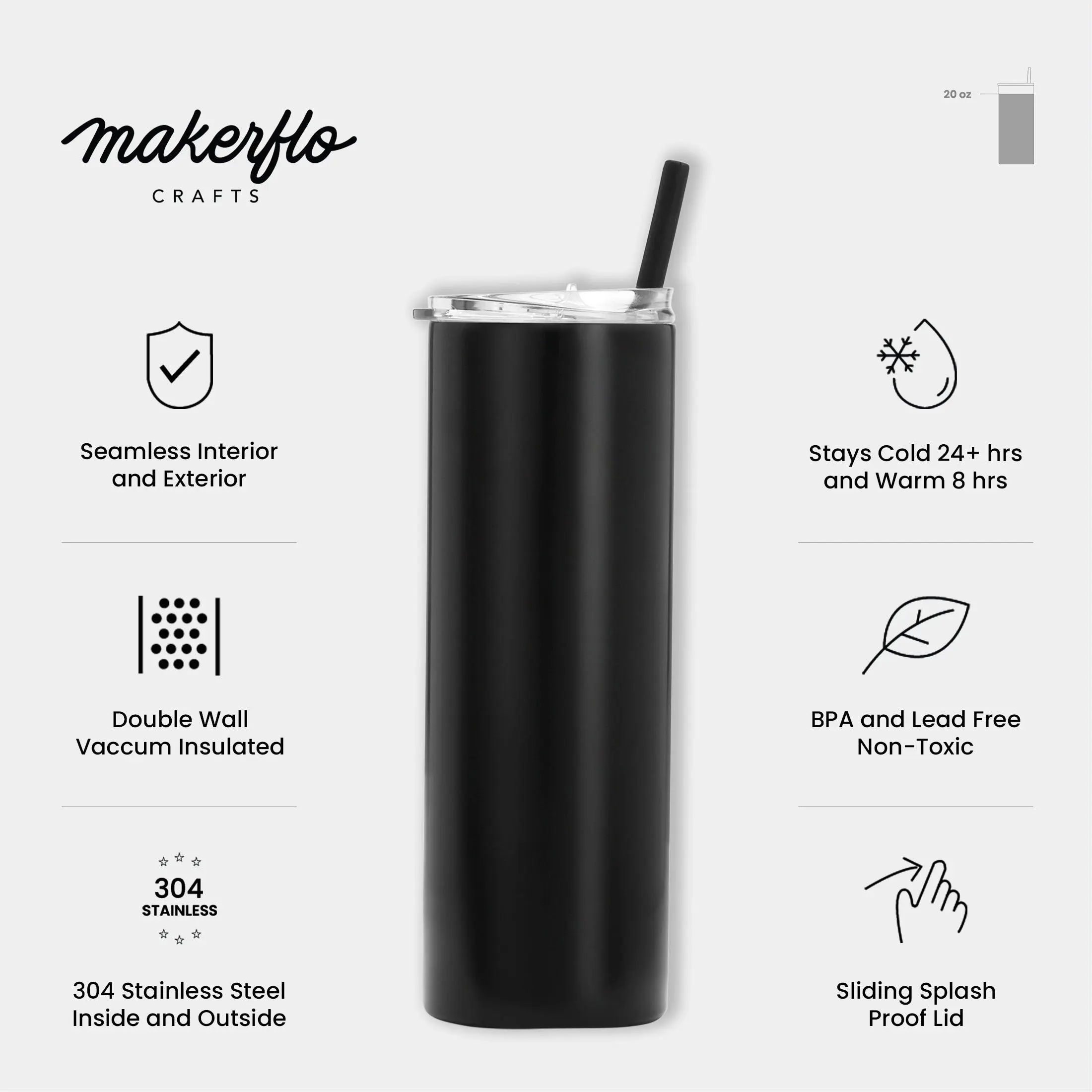 I just love the 20 oz. tumblers from MakerFlo. I have done several versions of tumblers and they all turn out good. I love the fact they include the instructions with the cups also.
