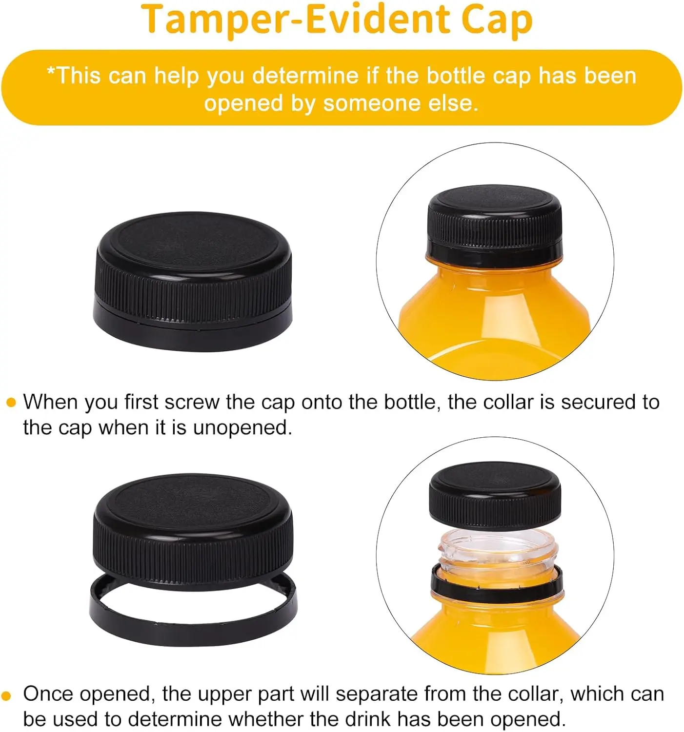·PREMIUM QUALITY: Made of thick food grade PET, with high permeability and air tightness, these juice bottles are safe and tasteless, drop resistant. Each bottle is individually packaged, healthy, providing you with a safe and lasting juice container. The tamper-evident cap keeps your beverage safer.