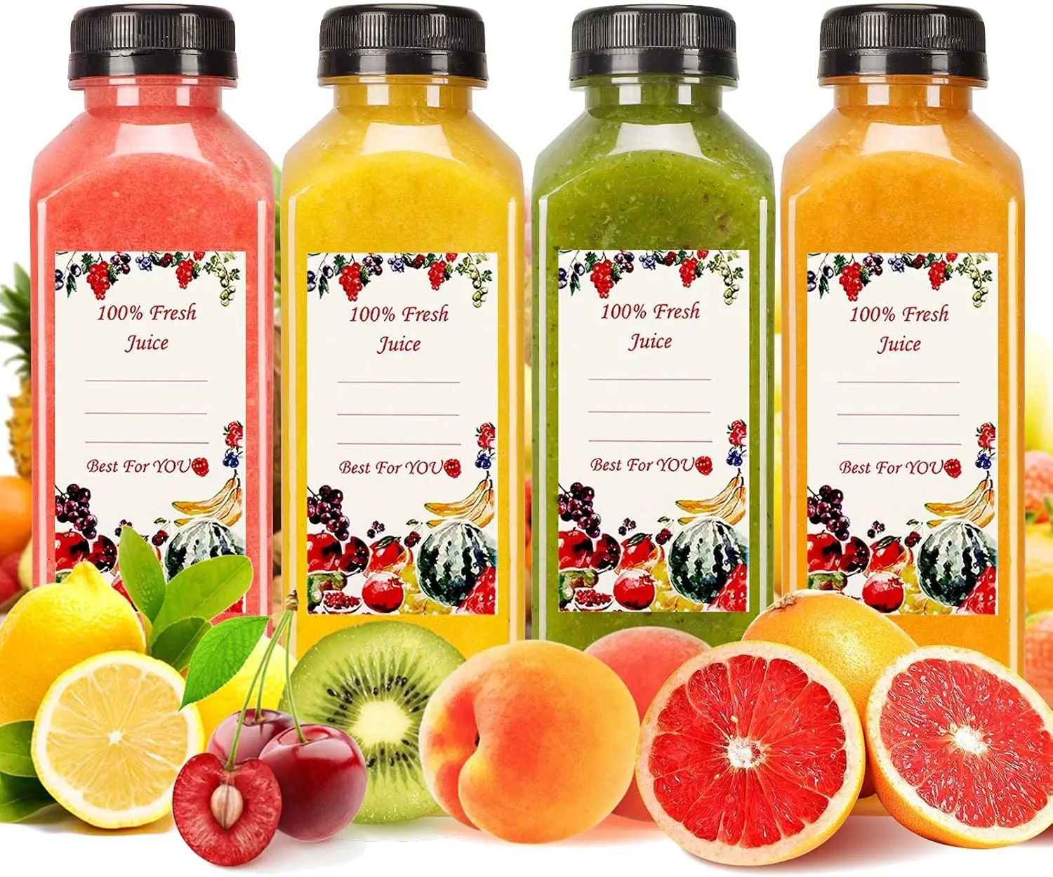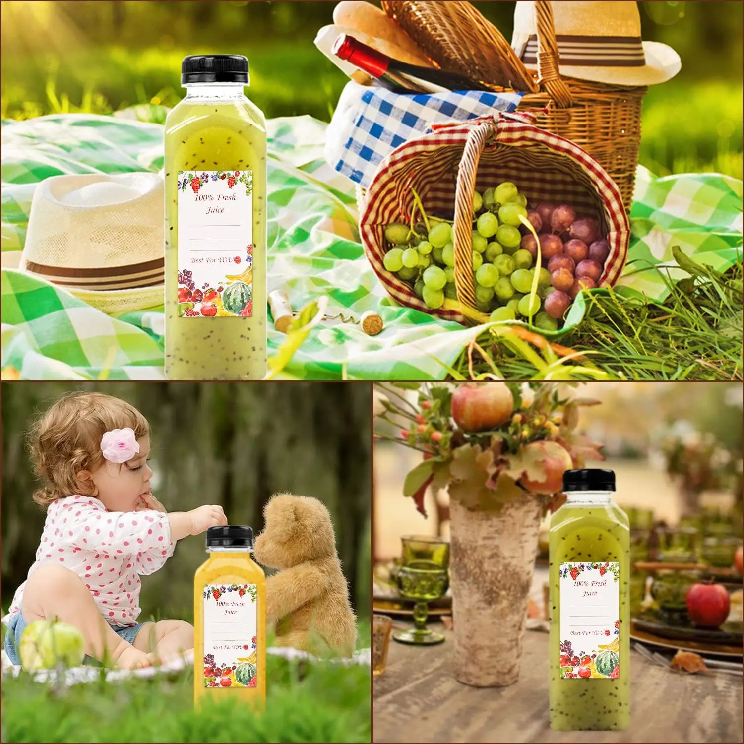 ·MULTI-FUNCTIONAL BOTTLES: These plastic juice bottles can be used to hold juices, smoothies, they are good for juice bars, smoothie shops, cafes. You can use them to decorate in family gatherings and birthday parties, or add a company logo or branded label to personalize the bottles to sell in a store or for services like takeout.