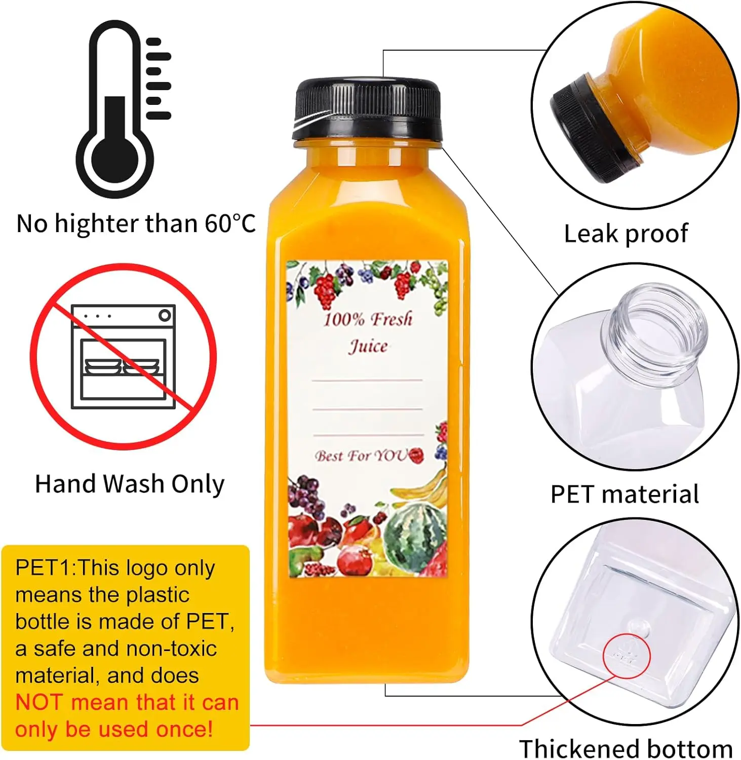 ·EASY TO CARRY: Our juice bottles are small and light enough to take anywhere, with a square bottle design that is both beautiful and practical, and the leak-proof plastic cap fits the bottle perfectly, preventing any spills or drips and keeping the contents fresh. They will be a practical choice for work, classes, picnics and any gathering.