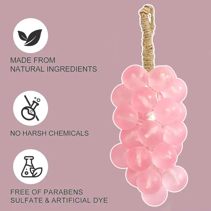 This 20 PCS Pink Grape Cluster Soap set is crafted from a natural plant-based formula.It features grape seed and olive oils, perfect for gentle moisturizing.Ideal for face, hands, and body, these soap bars are sulfate and paraben-free.A perfect gift for your girlfriend, ensuring a luxurious bathing experience.