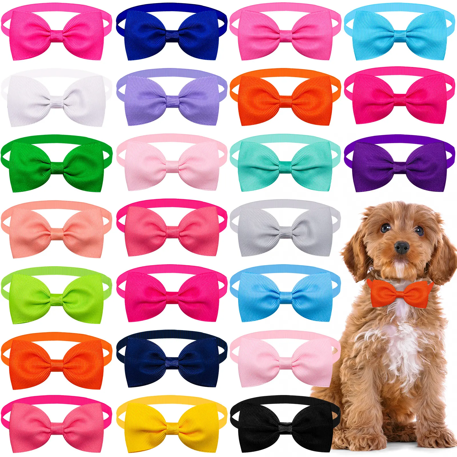 This set features a stunning rainbow of 18 vivid solid colors, including bright rose pink, sunny yellow, fresh mint green, classic blue, elegant purple, and more. Each bow tie boasts a neat, classic bow shape with a smooth texture, perfectly matching different pet fur colors and daily outfits. The rich color options let you mix and match to create unique looks for your dog or cat, making them the most stylish guest at any gathering.