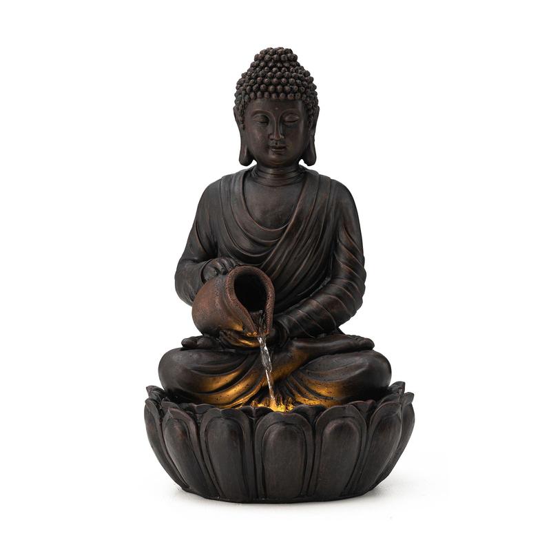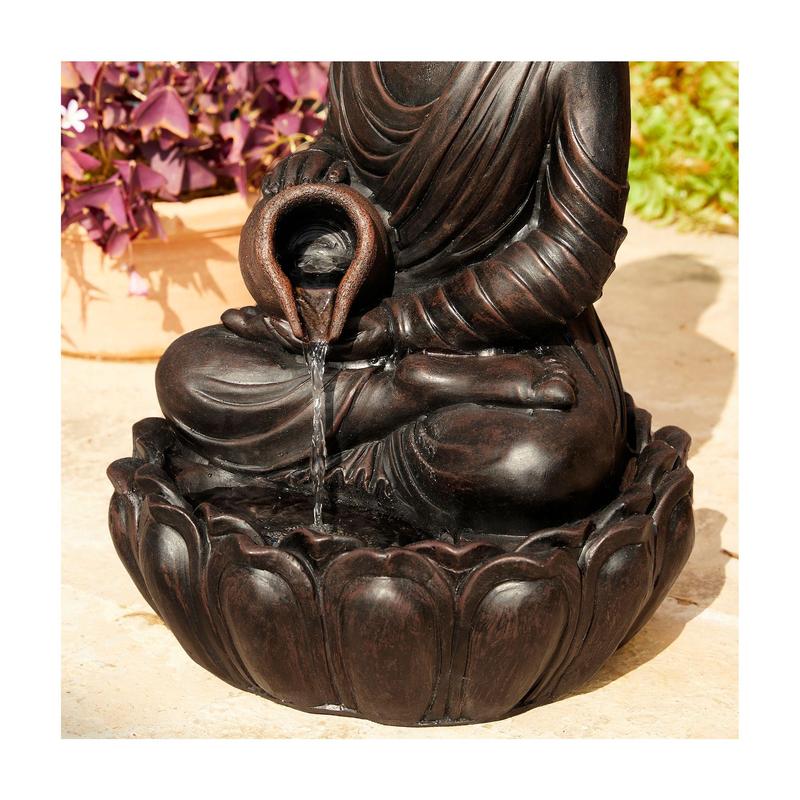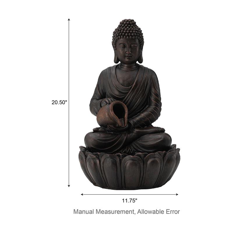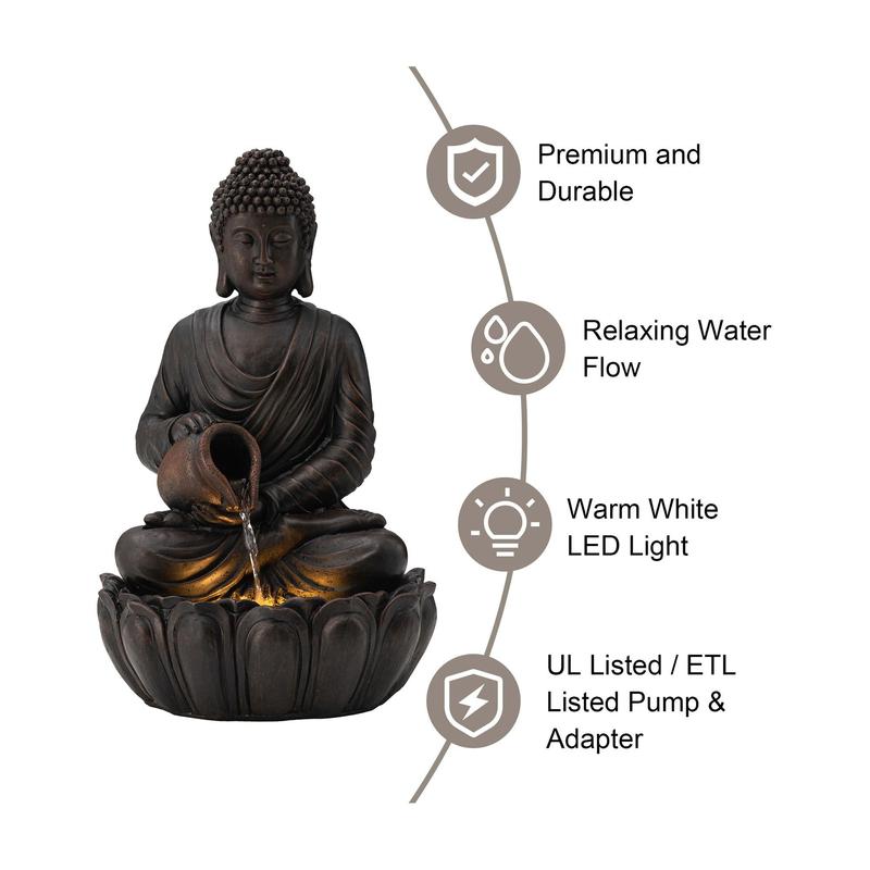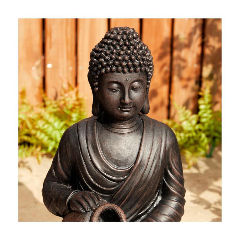 Create a serene oasis in your yard or home with this Zen-style meditative Buddha fountain. The lifelike embossed texture and antiqued details add a touch of artistic charm, while the LED lights create a captivating warm glow. Perfect for any garden, patio, or indoor space, this peaceful fountain brings tranquility and visual interest. From Glitzhome.
