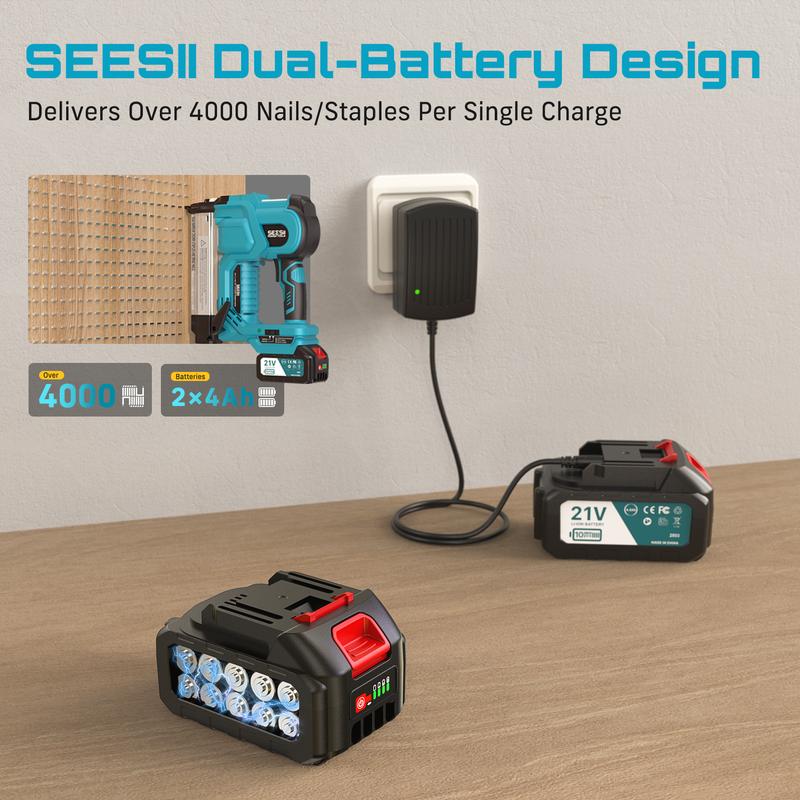 Equipped with two 4.0Ah high-capacity batteries and fast charger, delivers 4,000+ full-power shots per charge. Compatible with Seesii’s 21V tool ecosystem for seamless efficiency.