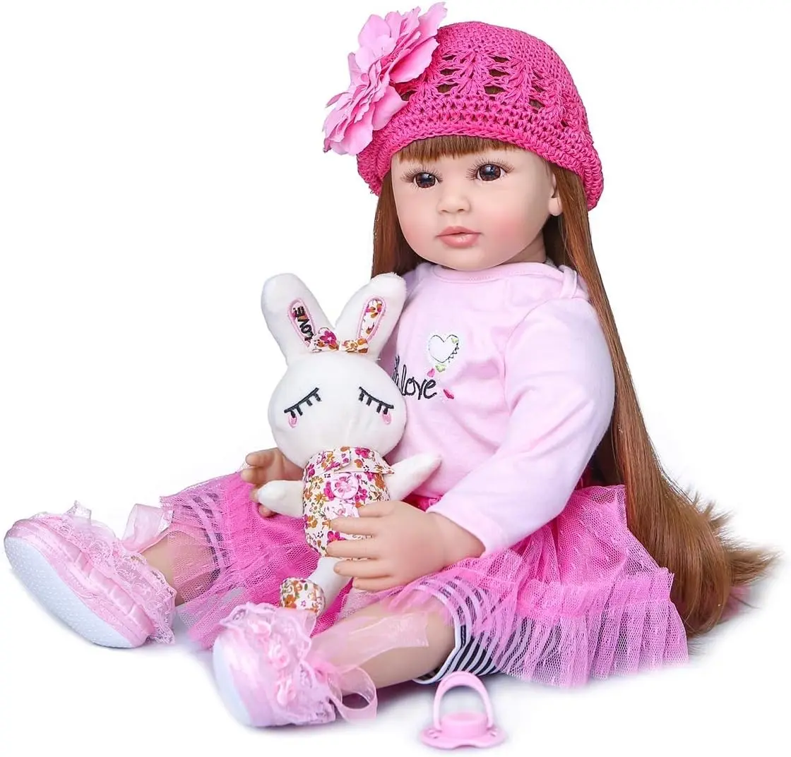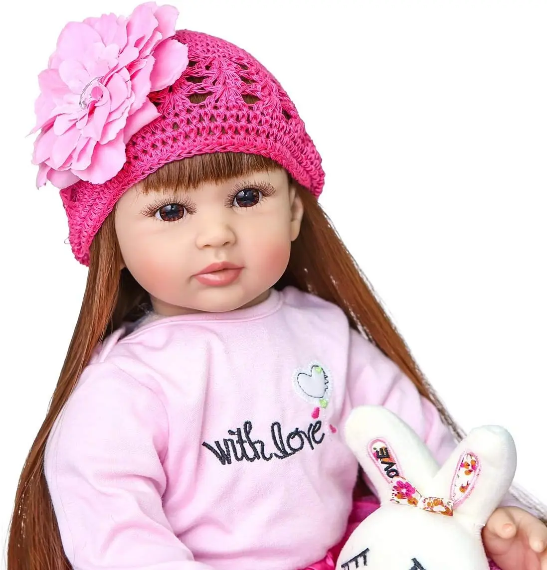 Meet our 22 inch realistic princess doll with long brown hair! The doll is made of soft vinyl material with a warm touch. Comes with a full body moving girl, doll, and accessories. Dolls can sit or stand, suitable for various occasions. It is an ideal choice for Christmas gifts, birthday surprises, and collectors.
