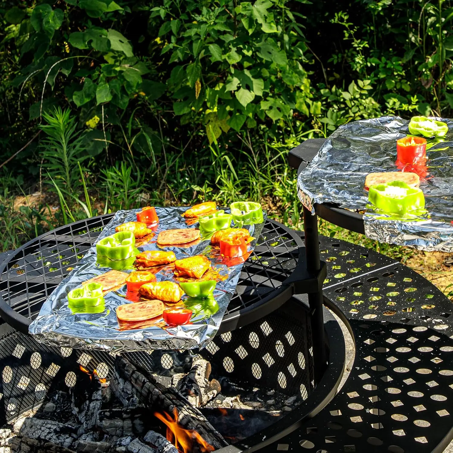 ·ăDouble Grillsă: The outdoor fire pit with 360 ° rotating cooking grates with different heights. It can better regulate the temperature required for food. One can also be used for baking food such as meat, vegetables, marshmallows or candies, while the other can be used for insulation