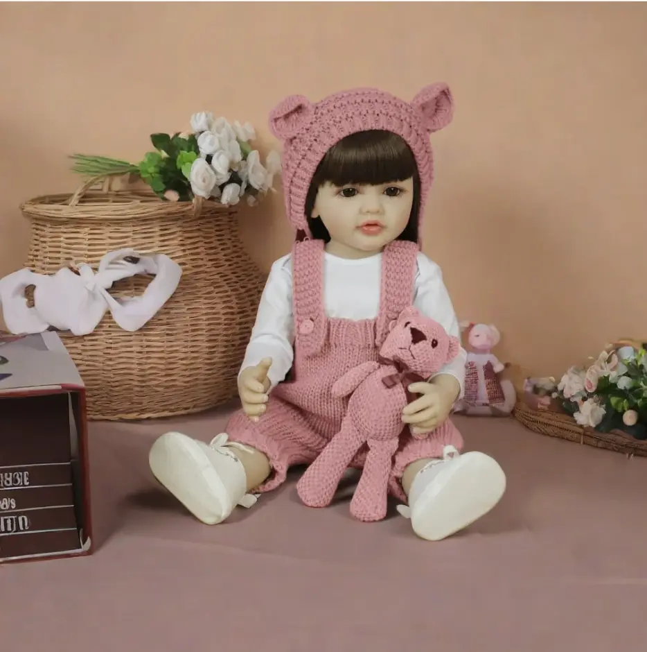 22" Realistic Princess Dollwith long brown hair and a pink bodysuit.This doll can sit and stand, making it versatile for play.Comes with a plush teddy bear, perfect for cuddles.Perfect for Christmas presents, birthdays, and as a collector's piece.