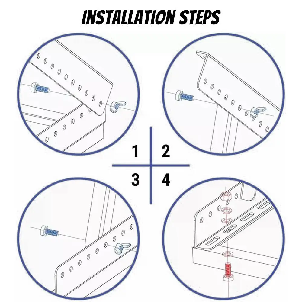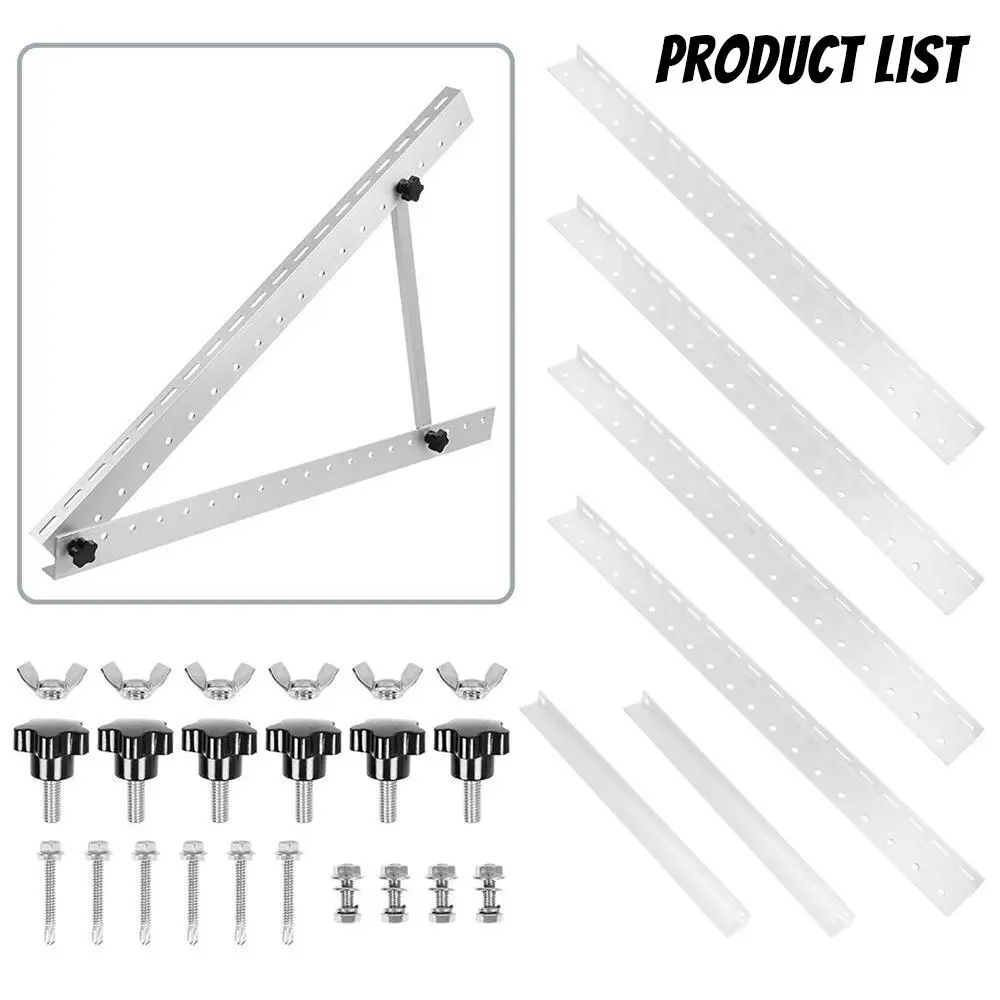【EACH SET CONTAINS】 All necessary mounting accessories are included completely for installing one solar panel. Aluminum Mounting Rail x 4pcs, Aluminum Tilt Angle Bracket x 2pcs, M8 Plastic & Stainless Steel Knob Bolt x 6pcs, M8 Stainless Steel Wing Nut x 6pcs, M6 x 16mm Stainless Steel Hex Bolt x 4pcs, M6 Stainless Steel Flange Nut x 4pcs .