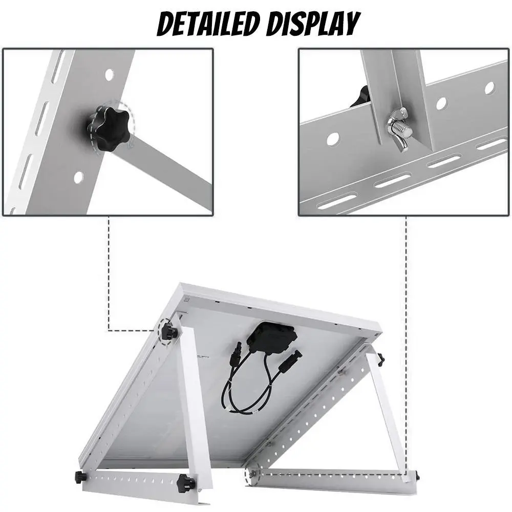 【MORE EFFICIENCY】 With Tilt angles being easily adjusted form 0-90°, solar panels can form the best tilt angle to get best sunlight in any season, which increases the output power efficiently.