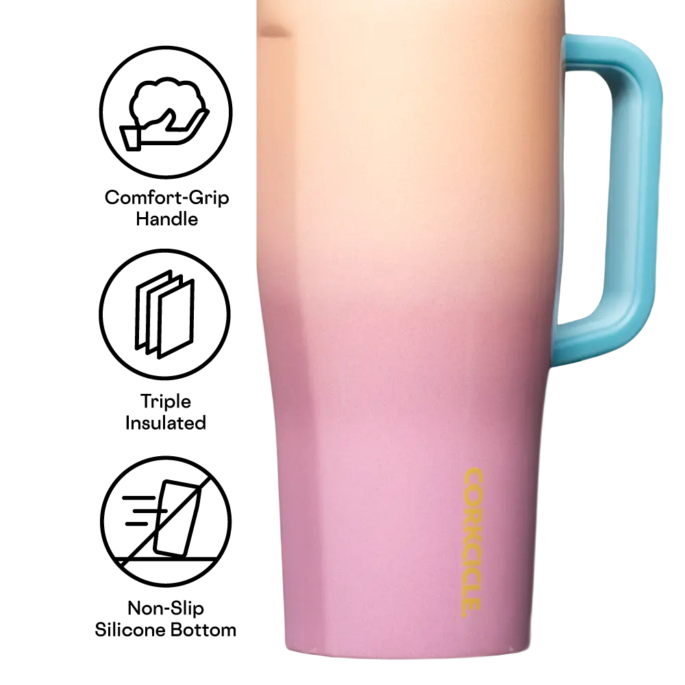 100% LEAKPROOF with a simple twist of the lid, Leakproof Cruiser is designed to keep up with the pace of your daily hustle. So go ahead and toss it in your work bag with your laptopānot a drop will escape. The Cruiser keeps your iced coffee, smoothie, or seltzer cold for 20 hours. Featuring a soft silicone straw, comfort grip handle, and non-slip silicone base, it has all the features that make Corkcicle stand out above the others. Plus, it fits in most cupholders so itās always along for the ride. The lid separates easily to clean, and itās dishwasher safe.