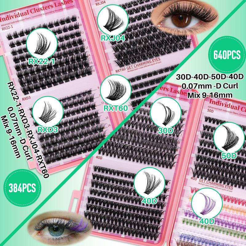2304pcs High Capacity Lashes Kit, D Curl 11 Styles Individual False Eyelashes Mix 9-16mm Mega Volume Wispy Lashes Colorful Lashes Soft Comfortable False Eyelashes Set with Eyelash Extension Glue & Tweezers, Diy Eyelash Extensions, Perfect For DIY At Home