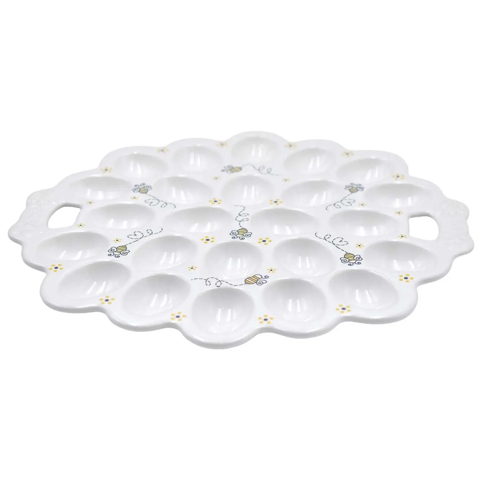 Deviled eggs perfectly. I love the bee theme. Perfect for spring. It’s sturdy and well made.