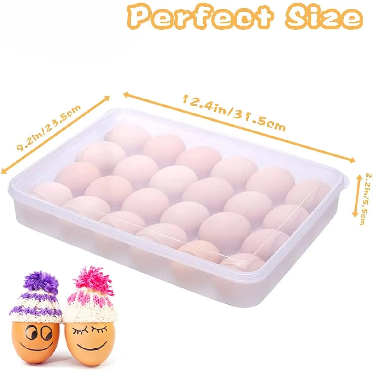 Measuring 12.4 × 9.2 × 2.2 inches, this plastic egg tray features 24 dedicated slots to hold up to 24 eggs securely. Each slot holds a single egg in place, helping maintain egg freshness and preventing unwanted damage during storage.
